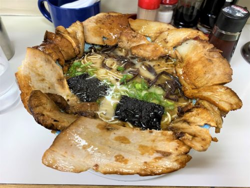 立て看板にも写真掲載がある「ネギラーメン」がおすすめですが、もうひとつの人気メニューは「焼き豚ラーメン」。
