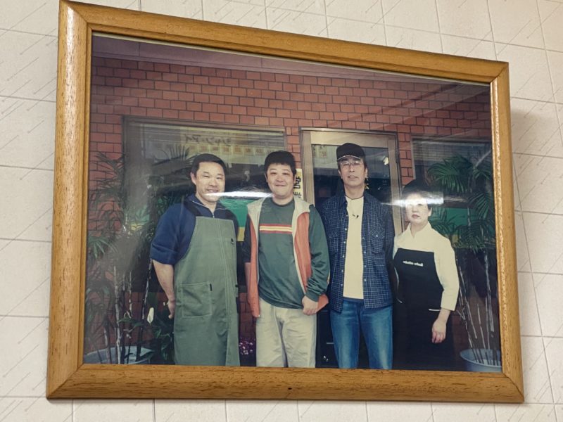 まだ働き盛りの頃の店主とおかみさんの間に写るのは、私の青春のNO1コメディアン「志村けん」さん!そして、その隣で少しはにかみながらの表情で写っているのは、ダチョウ倶楽部の「上島竜兵」さんです。