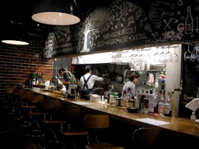 オープンキッチンに面したカウンターが人気で、女性一人のカウンター客も結構多いそうです。
