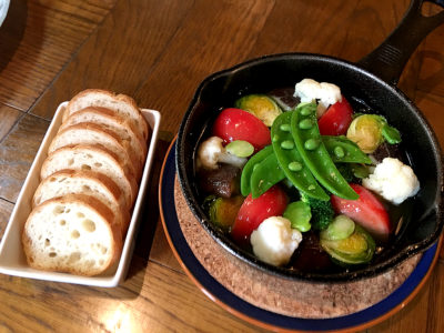 このアヒージョの内容も季節に応じて具材が変わり、もうすぐ春野菜中心に変えていくそうです。