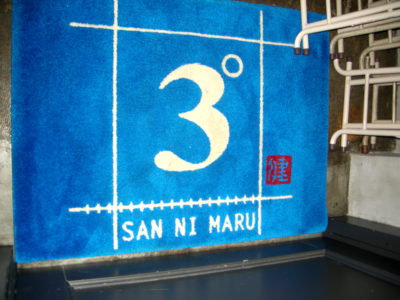 お店のマットレスや看板に掲げられているこのユニークなロゴ。「 SAN-NI-MARU」と言う名前は「3」に「○」と書くそうです。これはお客さんからお店を評価してもらうとき、通知表の5段階で普通よりちょっと良くて、これからもっと上を目指すような評価にして欲しいという思いからつけた名前だそう。