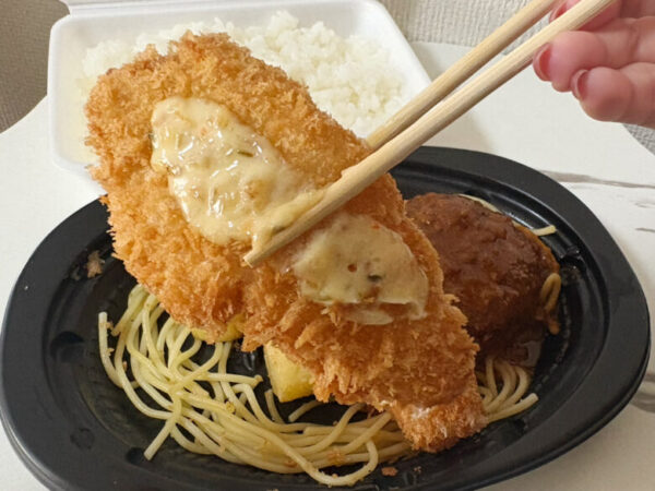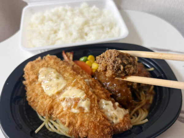 掛かっているのは甘みを感じるデミグラスソース。まさに洋食屋のやつ!お弁当でこのクオリティはテンション上がりますね。