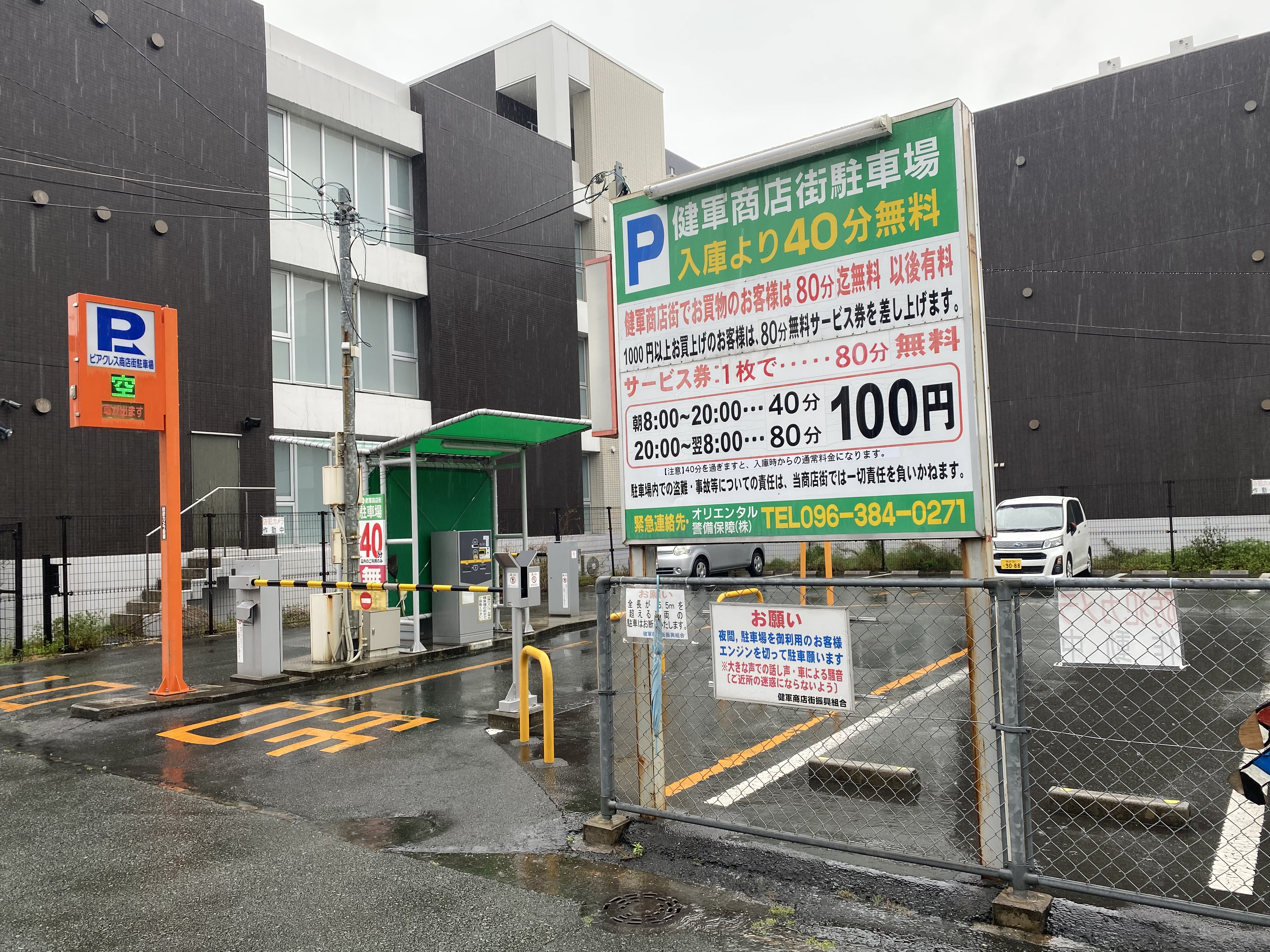 近くに健軍商店街の駐車場があります。なんとここは40分無料!