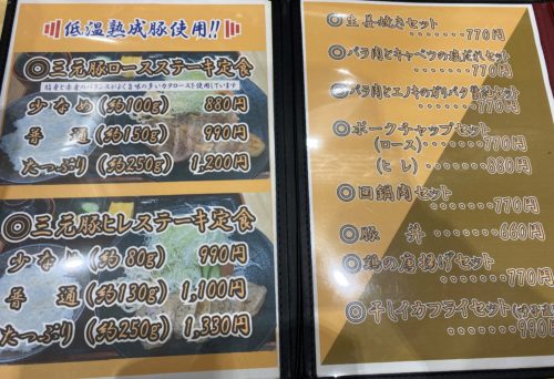 ポークステーキに生姜焼きセット、回鍋肉に豚丼と豚肉のオンパレード。どれも美味しそう。