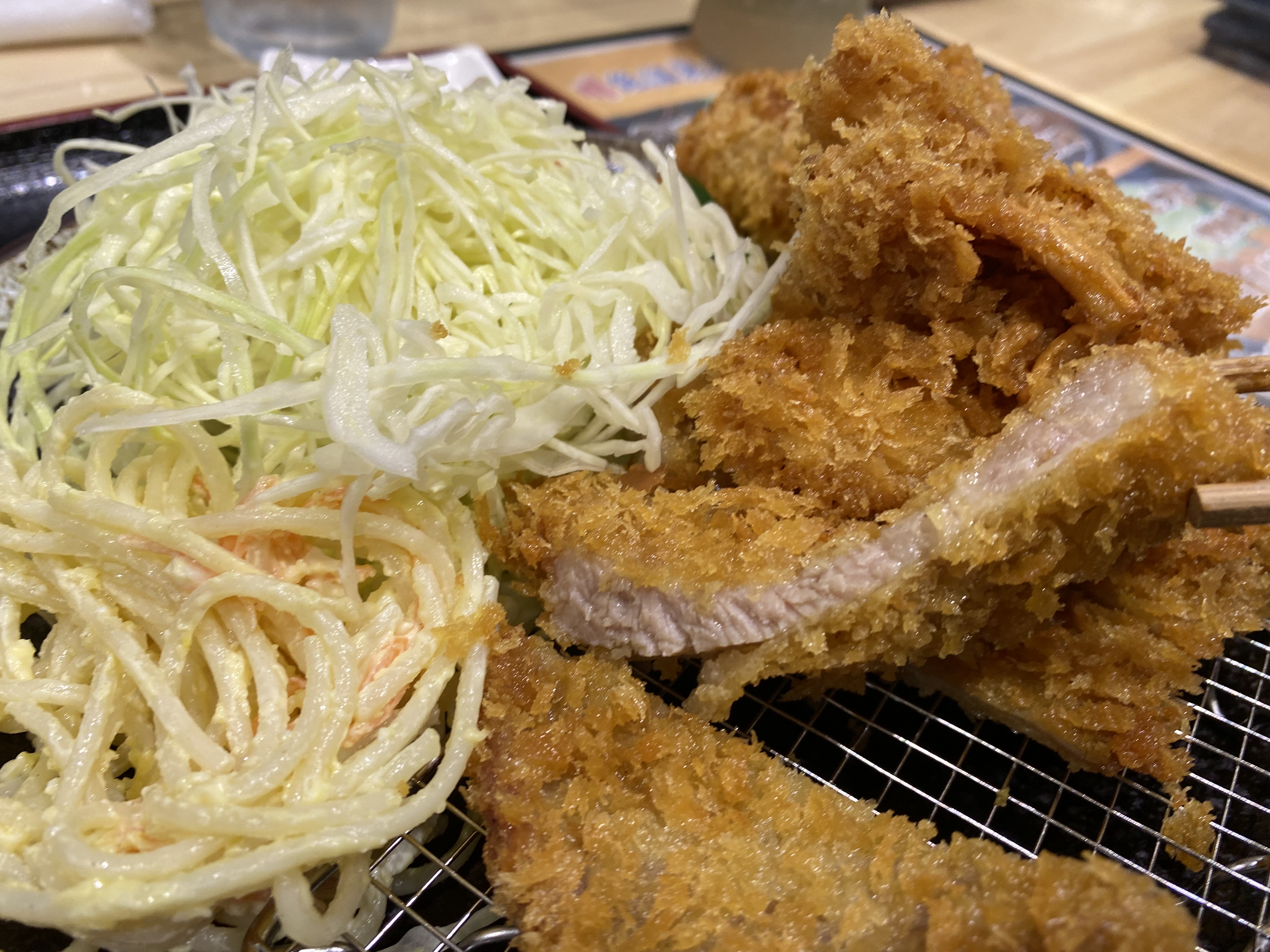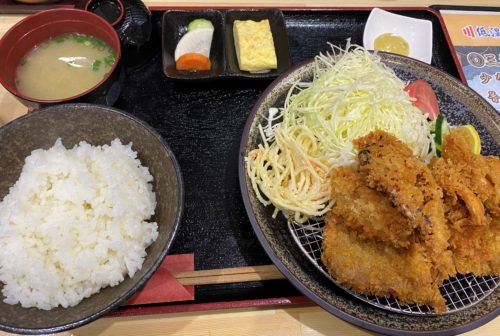 まずは、三元豚のロースかつセットでしょ!気になる「干しイカのフライ」もトッピングしてもらいました!