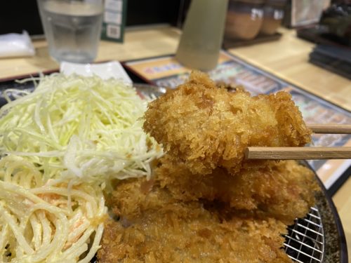 見てください!茶色い衣に包まれたピンク色の三元豚を!柔らかくてジューシー!