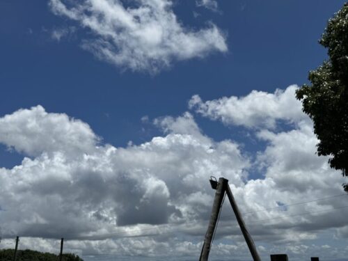 山の上なので、とても見晴らしがよく、暑い日ではありましたが、風がとても気持ちよく吹いていました。青空が近く、とても心が安らぎます。