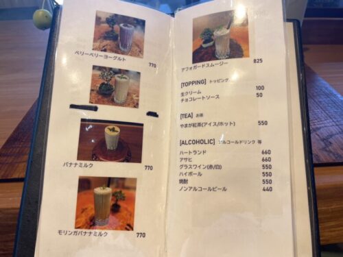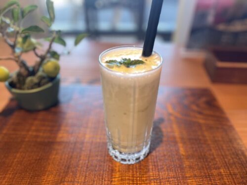そしてドリンクは、+300円でモリンガバナナスムージ―を頼んでみたのですが、これがまたなめらかで、バナナの優しい甘さと、モリンガのさわやかな香りの組み合わせが最高!盆栽を鑑賞しながら、とっても美味しくいただきました!