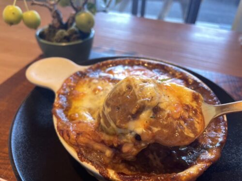 グラタン皿から溢れんばかりの、とろっとろのカレードリア。