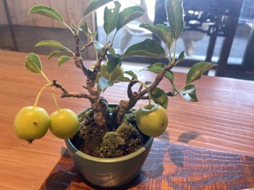 実が大きくて、なんともかわいらしい盆栽で、こちらも購入可能です。