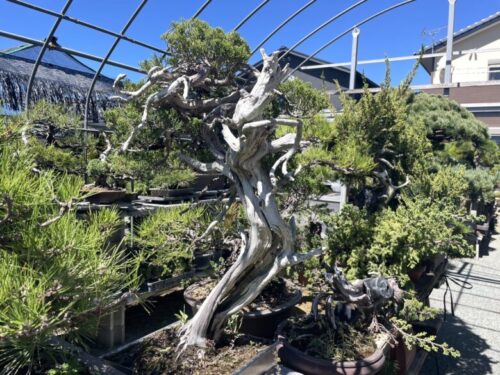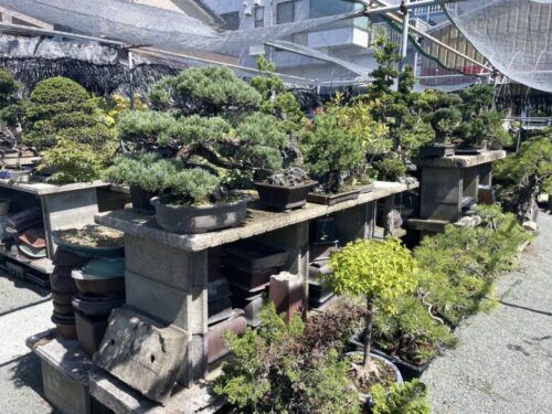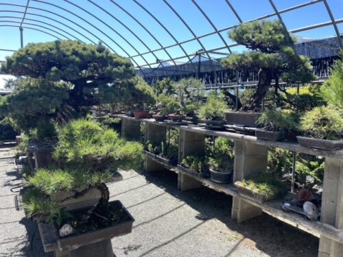 奥の扉から外に出ると、おびただしいほどの立派な盆栽の数々!