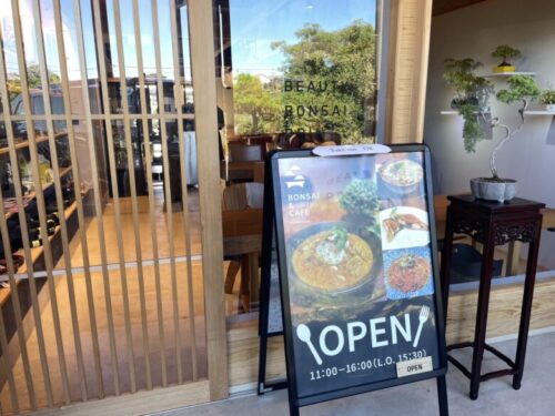 自然のつくりだす美と、人が手を入れることで磨かれていく、完成のない生きた芸術・盆栽に、心が洗われ、豊かになる…そんな素敵なカフェでした。