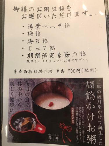 お粥の餡は、湯葉べっ甲餡など、5種から選ぶことができます。