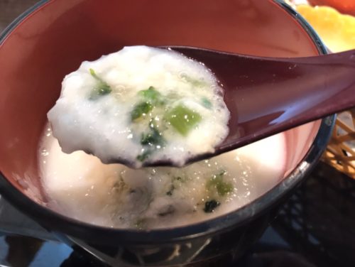 こちらのお粥は、約3年間試行錯誤を繰り返して誕生したという、究極の逸品です。「言われた以上のことをやる」という前田料理長は、休みの日もお店に出て研究され、眠れないぐらいお粥について考えられたそうです。