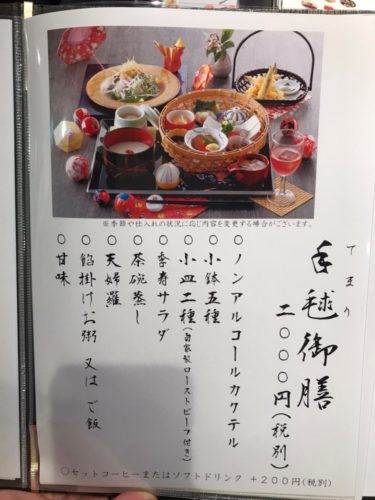 気軽に食べられる定食などもありますが、今回はこちらの手毬御膳をいただいてみることにしました。
