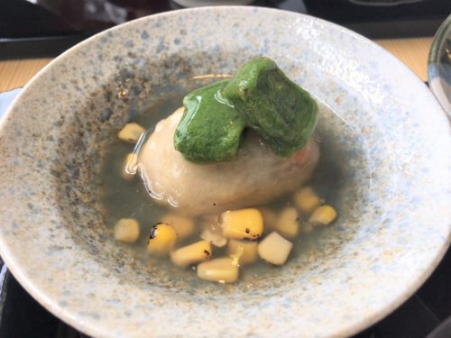 海老蓮根饅頭は、もっちりした食感と、蓮根のシャキシャキ感、さらに、海老のぷりぷり感まで楽しめます。そしてまた、この出汁のきいた餡が最高!!!