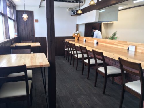 店内は明るい色の木のカウンターにテーブル席があり、落ち着いた雰囲気です。
