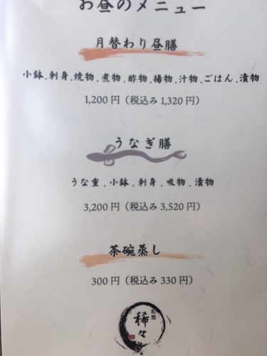 メニューはシンプルで、月替わり昼膳とうなぎ膳と茶碗蒸しのみとなります。
