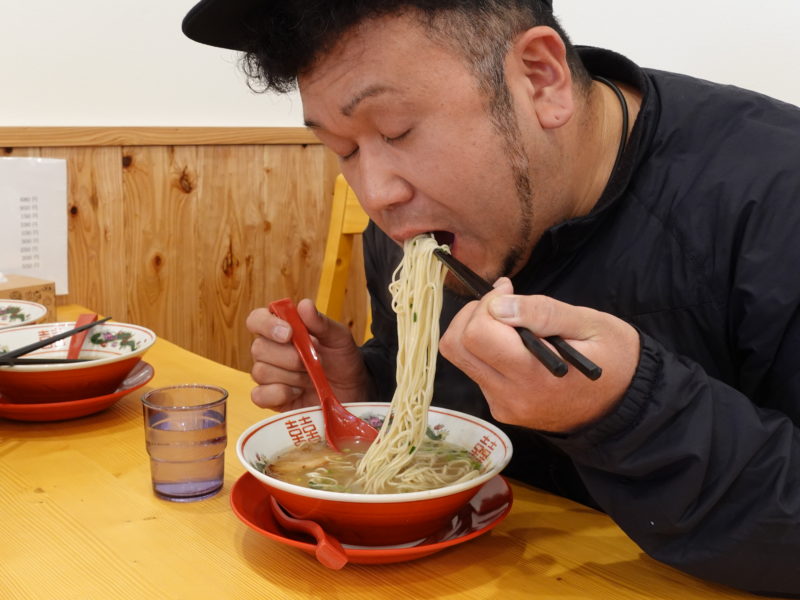 熊本弁であすけ→あそこ(あそこのラーメン屋に行く)という意味が由来なんです。