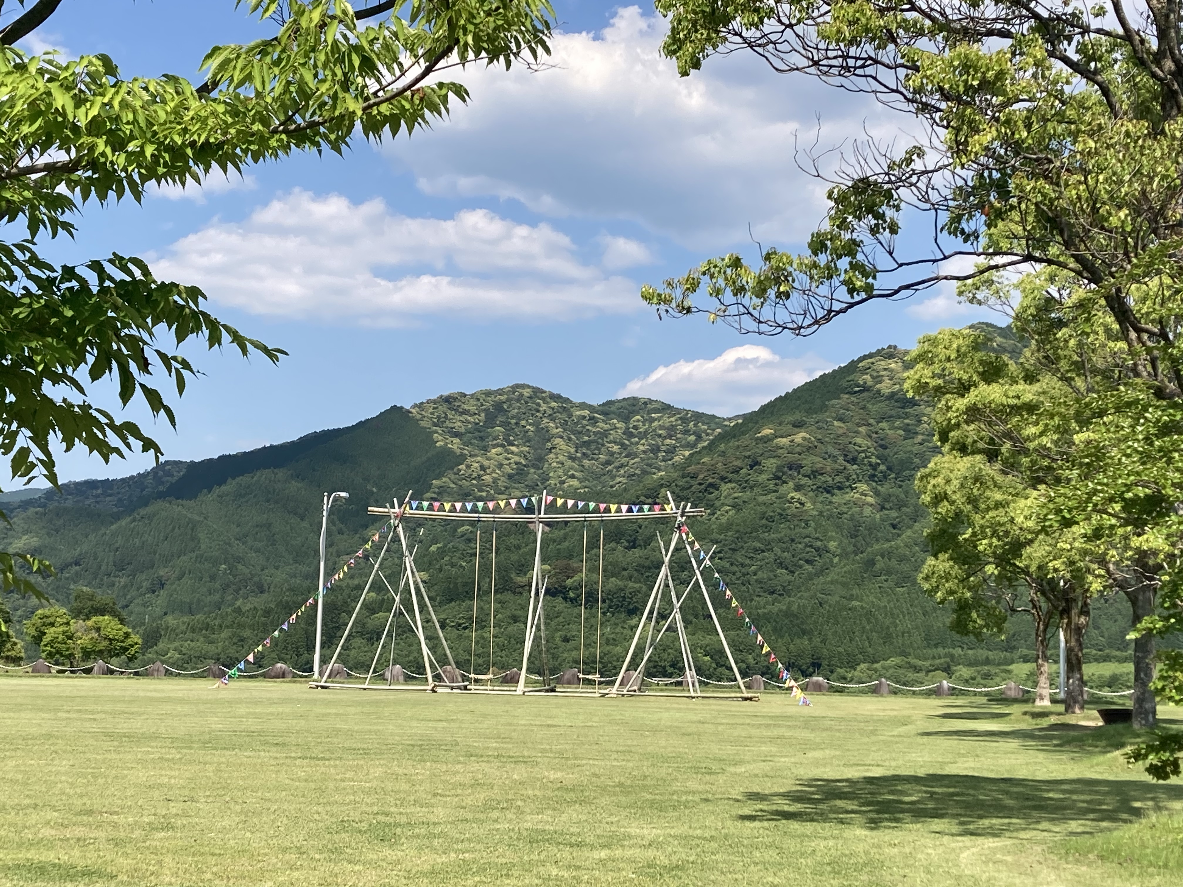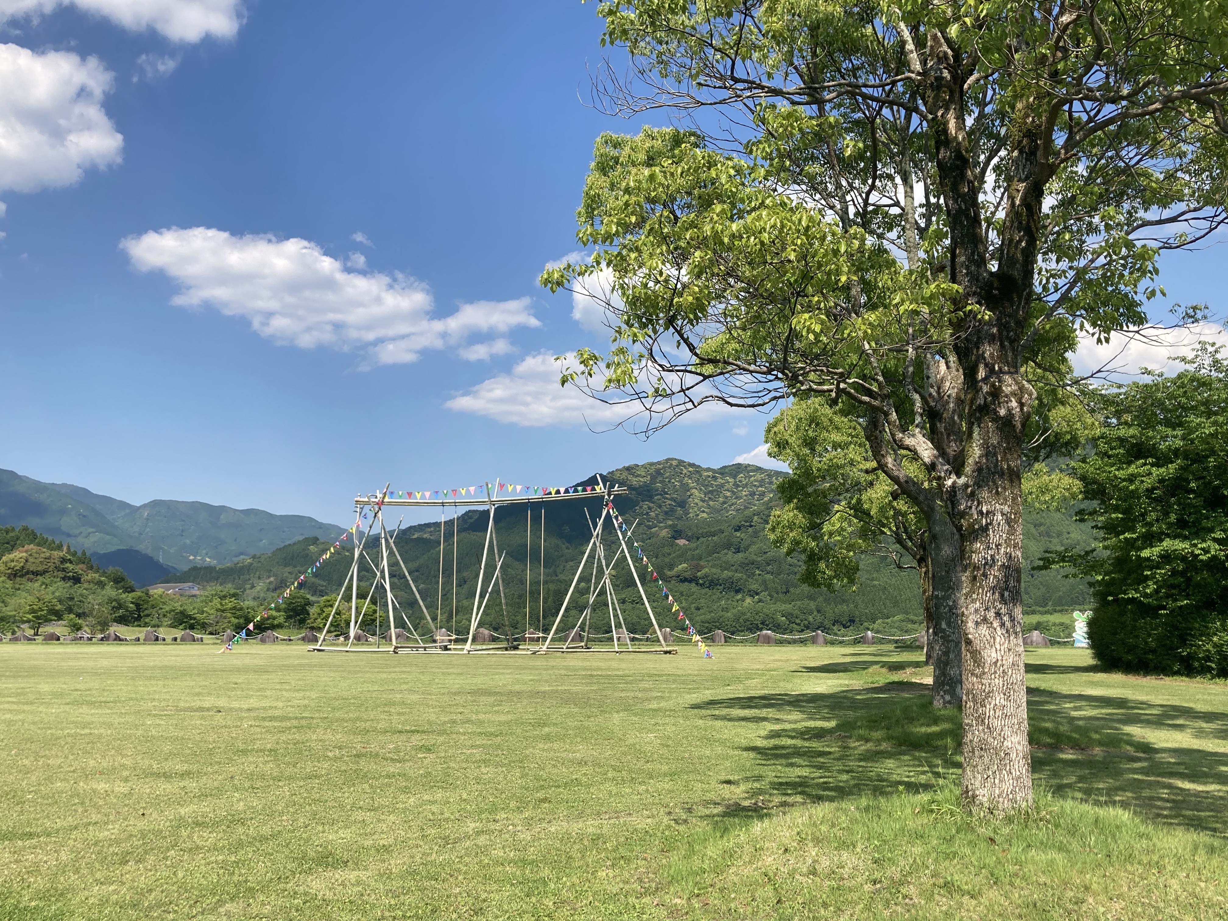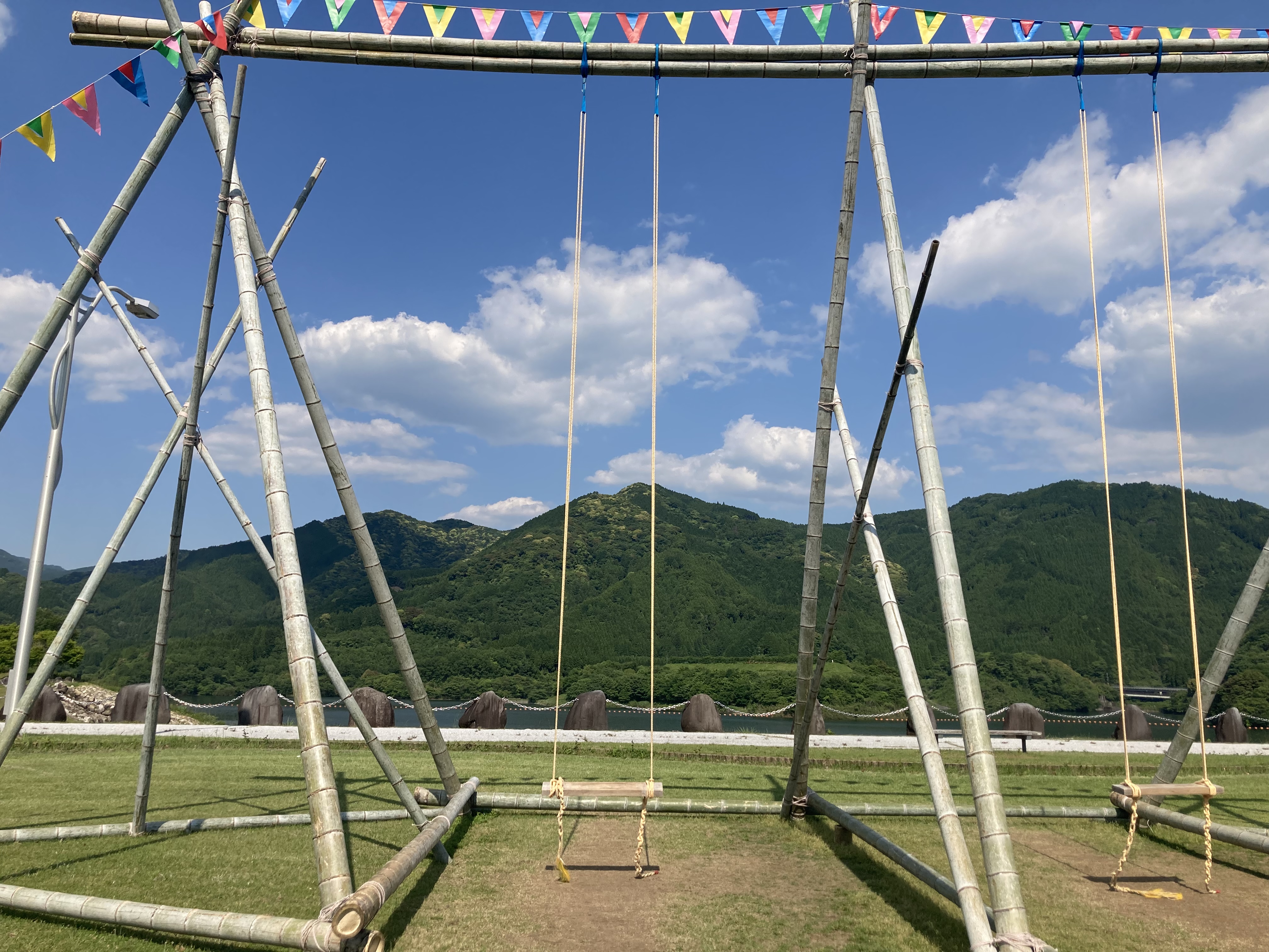 竜門ダム芝生広場にある『絶景ブランコ』。ブランコは2台しかないので節度を守って使いましょうね!