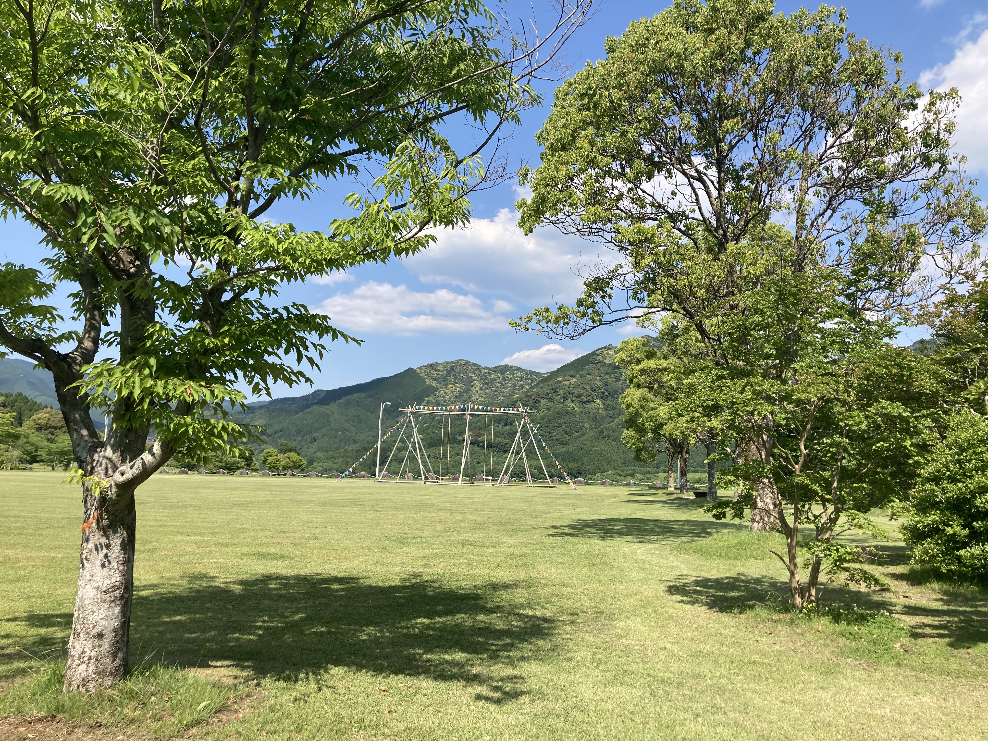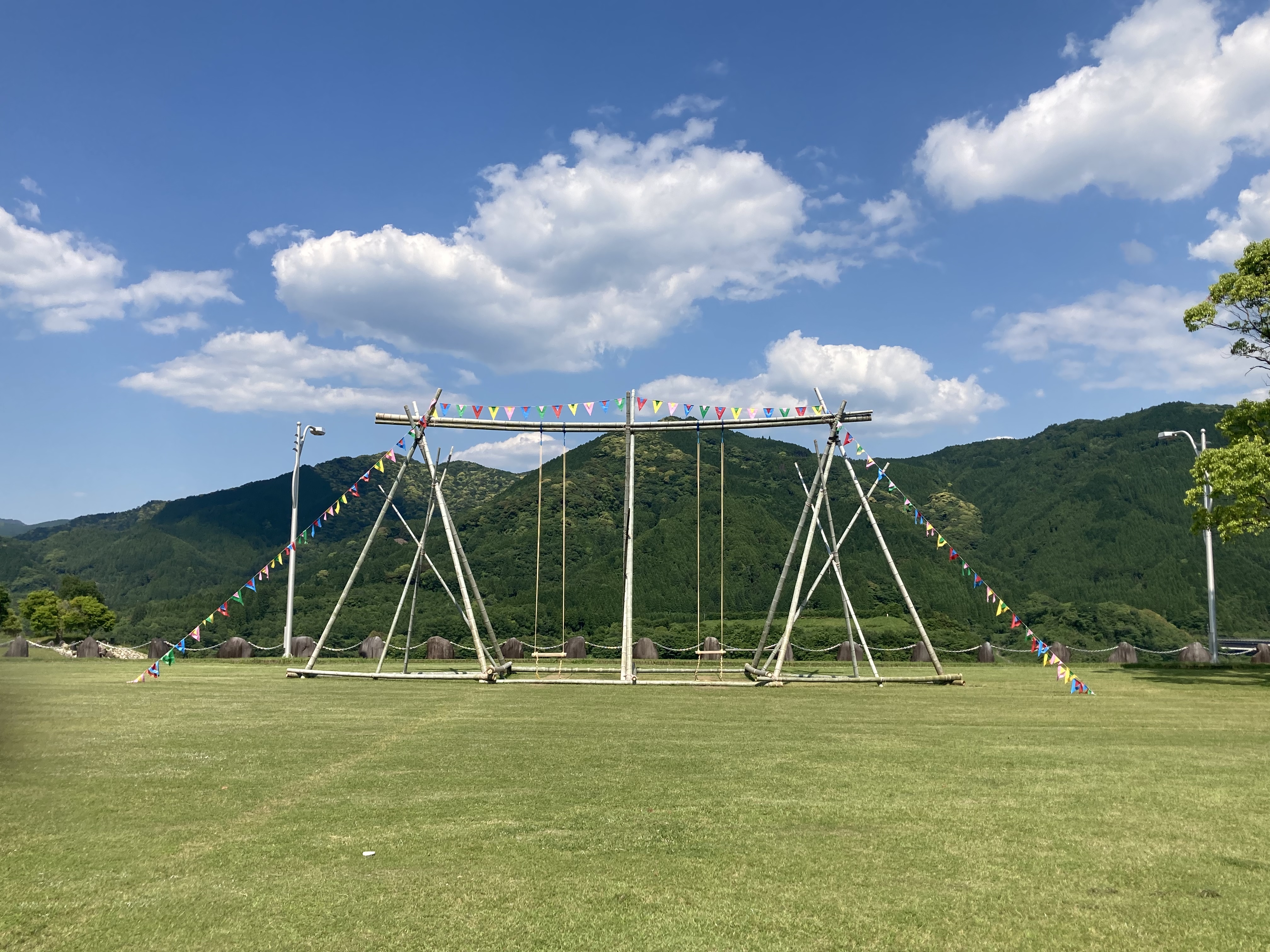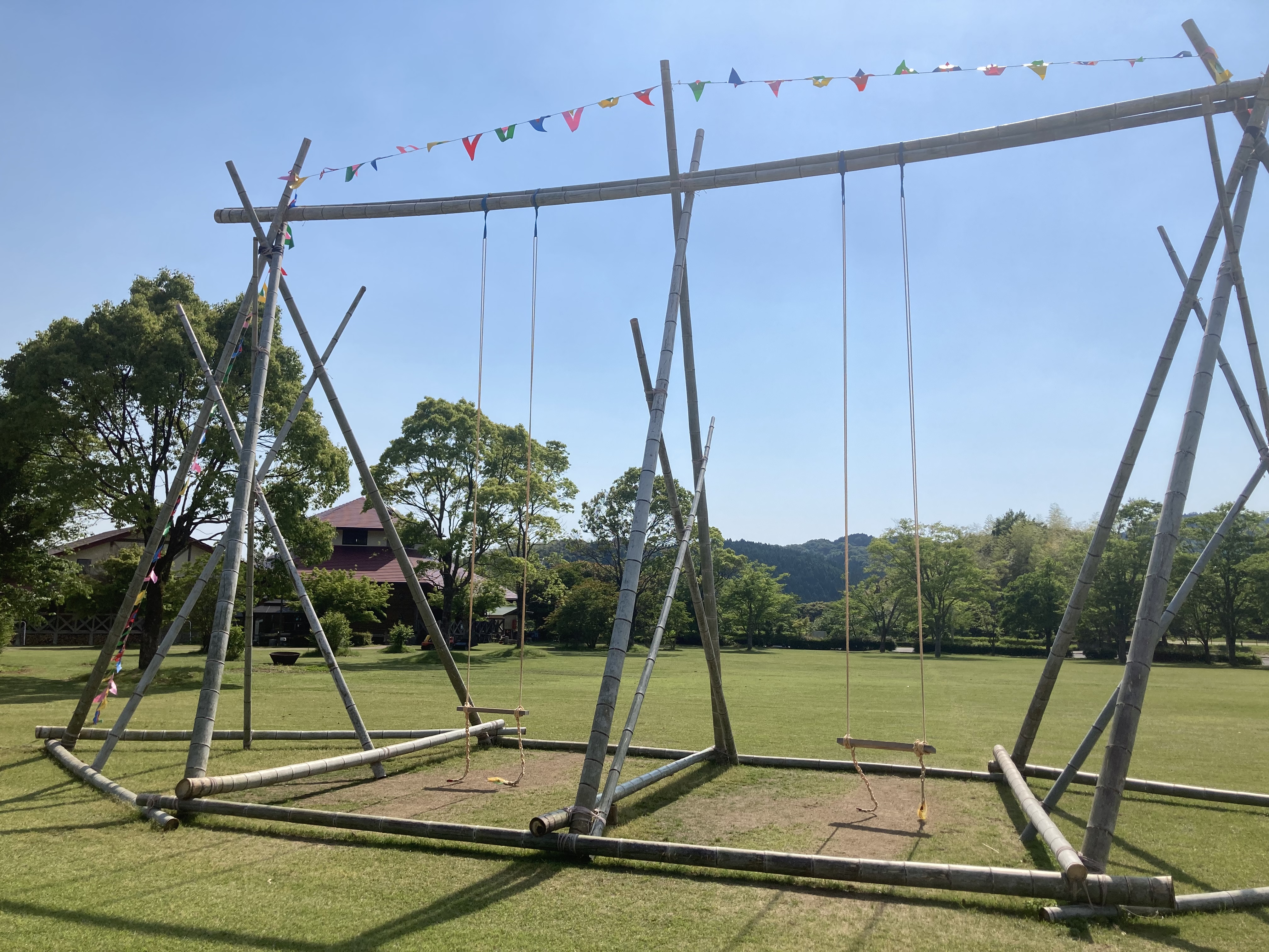 竜門ダム芝生広場にある『絶景ブランコ』。ブランコは2台しかないので節度を守って使いましょうね!