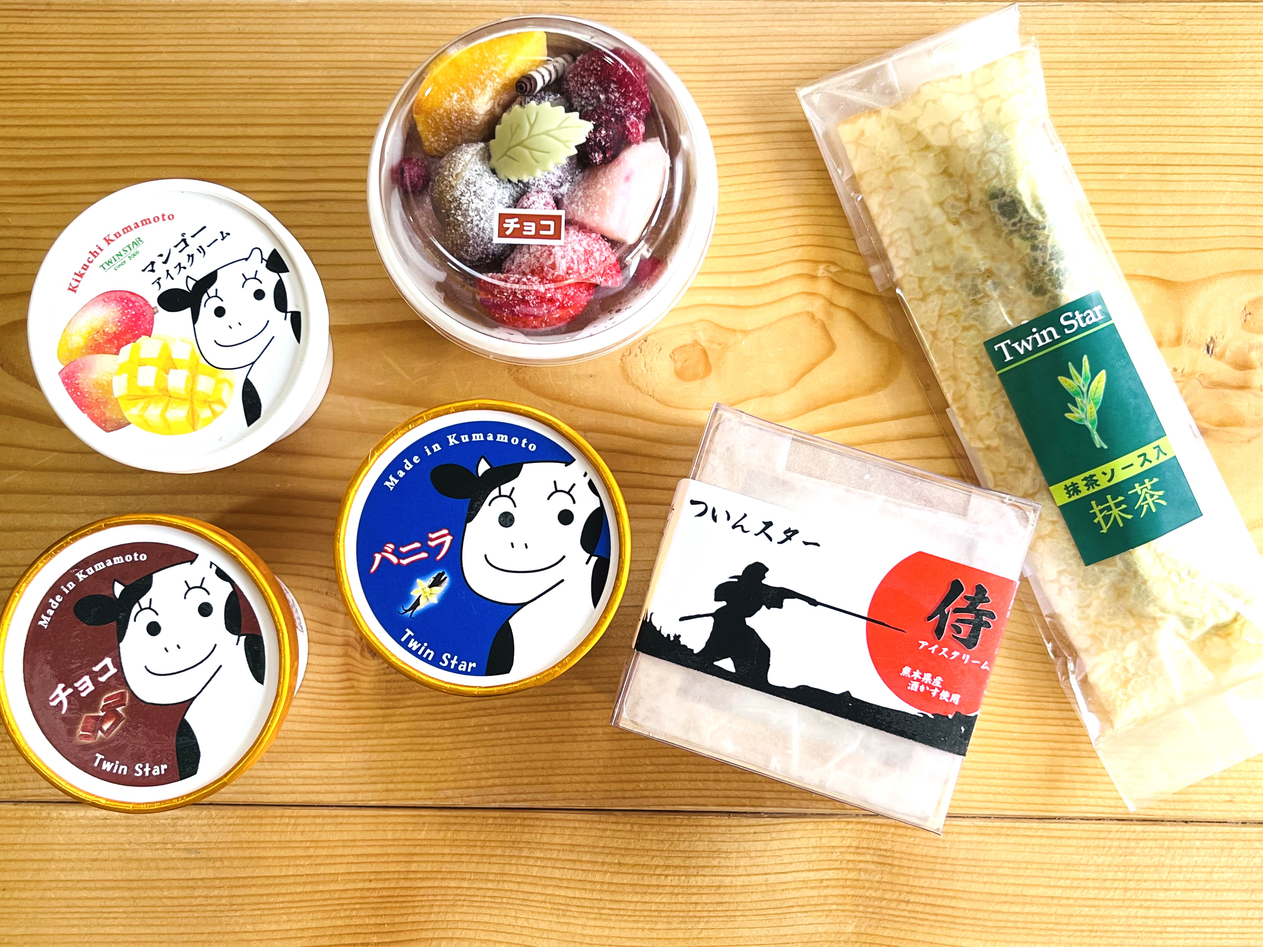 左からプレミアムシリーズ350円・果実の森550円・ます酒アイス1,592円・アイスクレープ300円