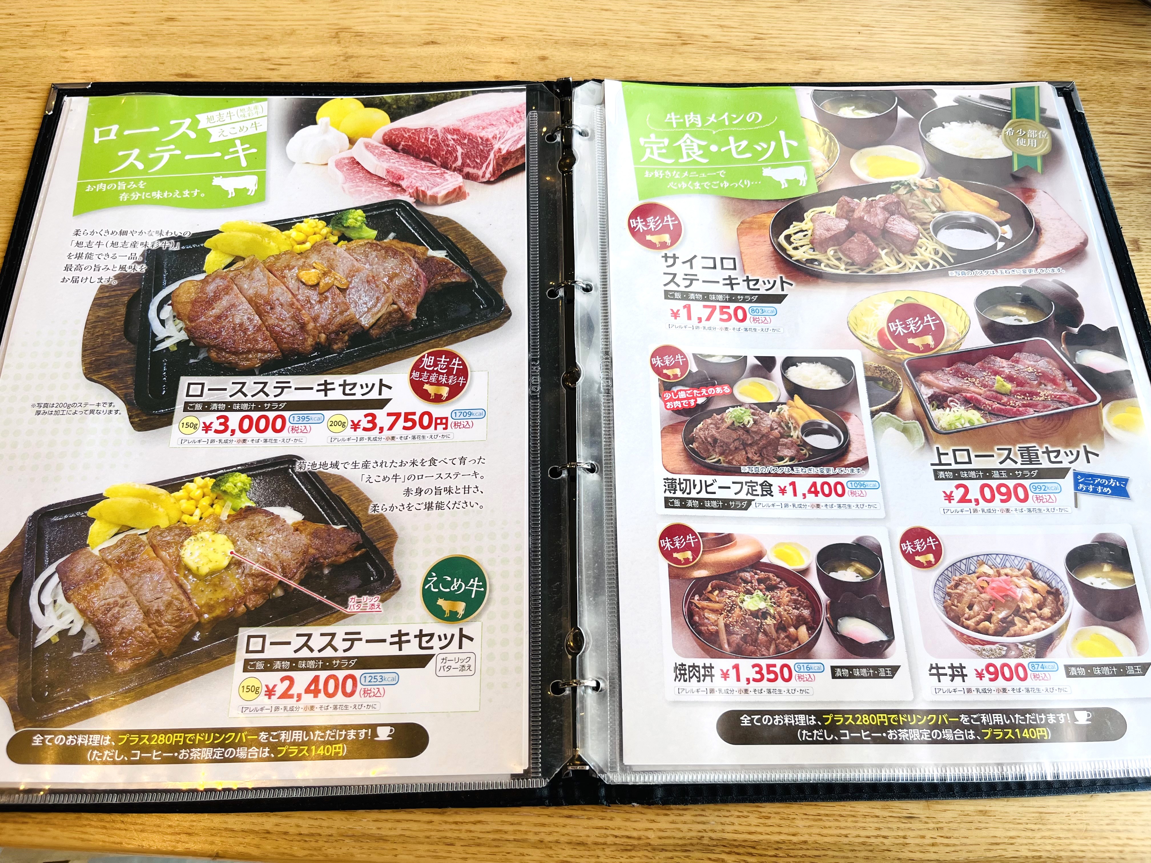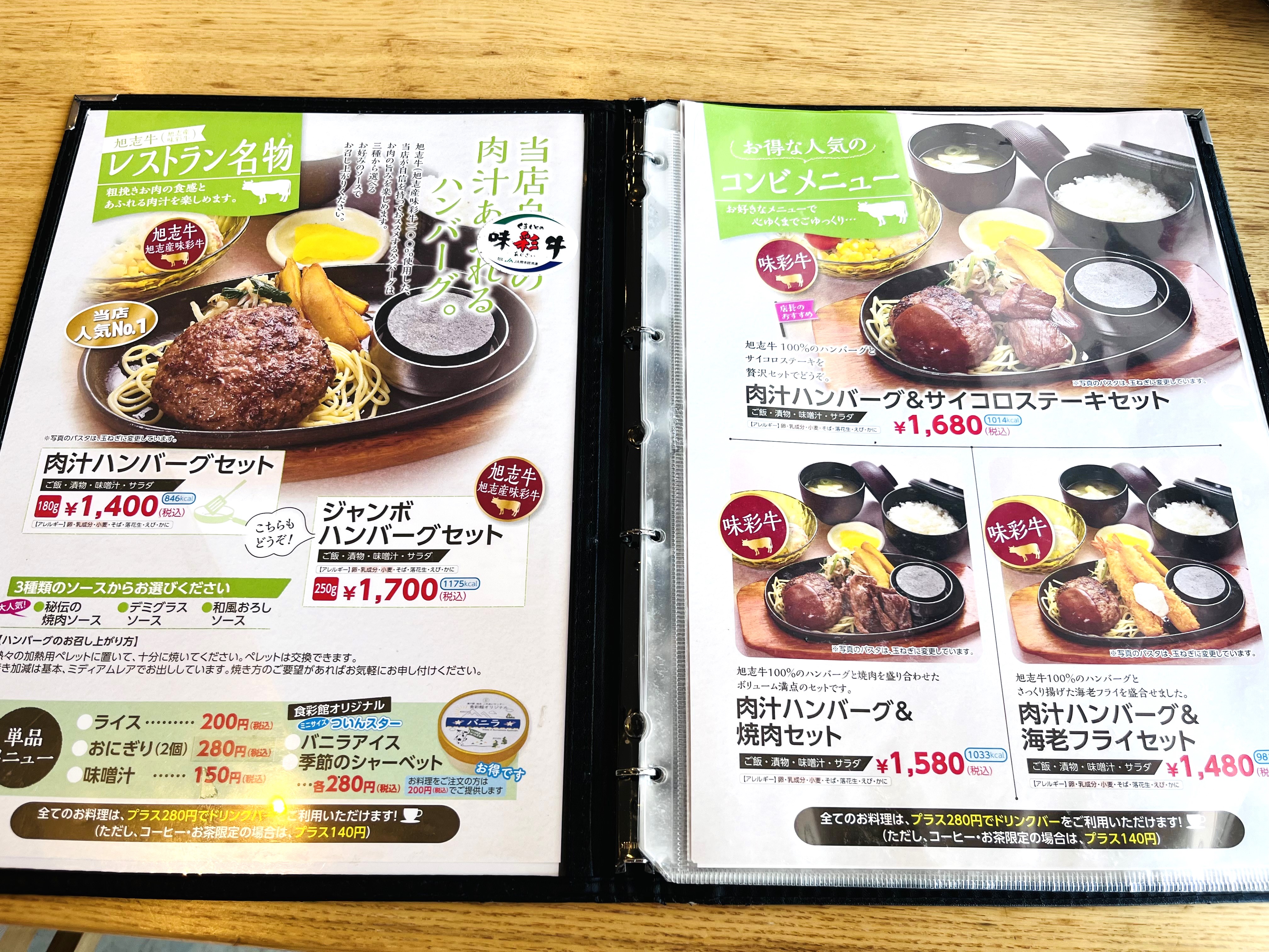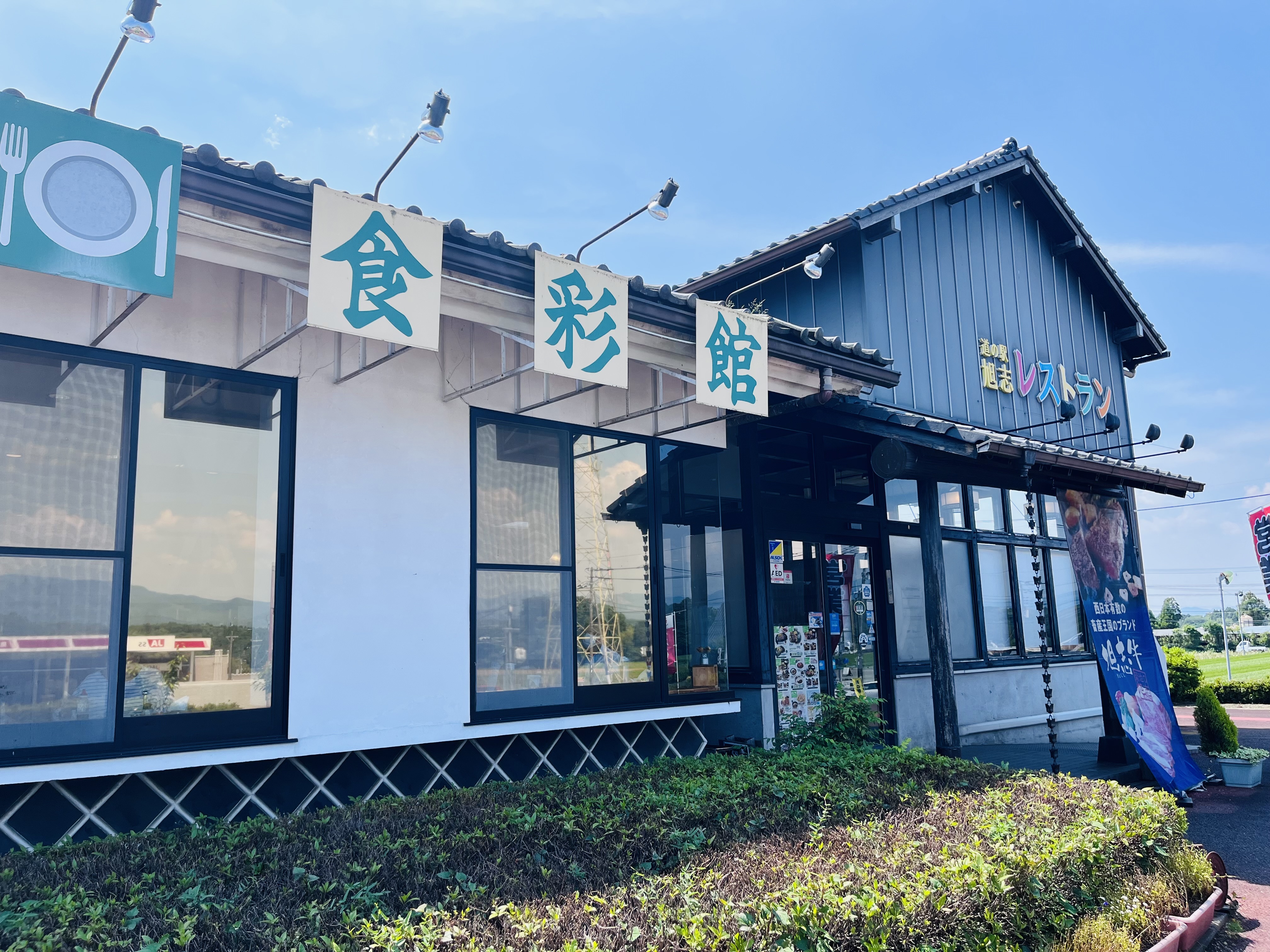 やってきたのはこちら。菊池の美味しいお肉をリーズナブルに食べられる道の駅 旭志のレストラン「食彩館」。元気になりたいときにはお肉だよね。