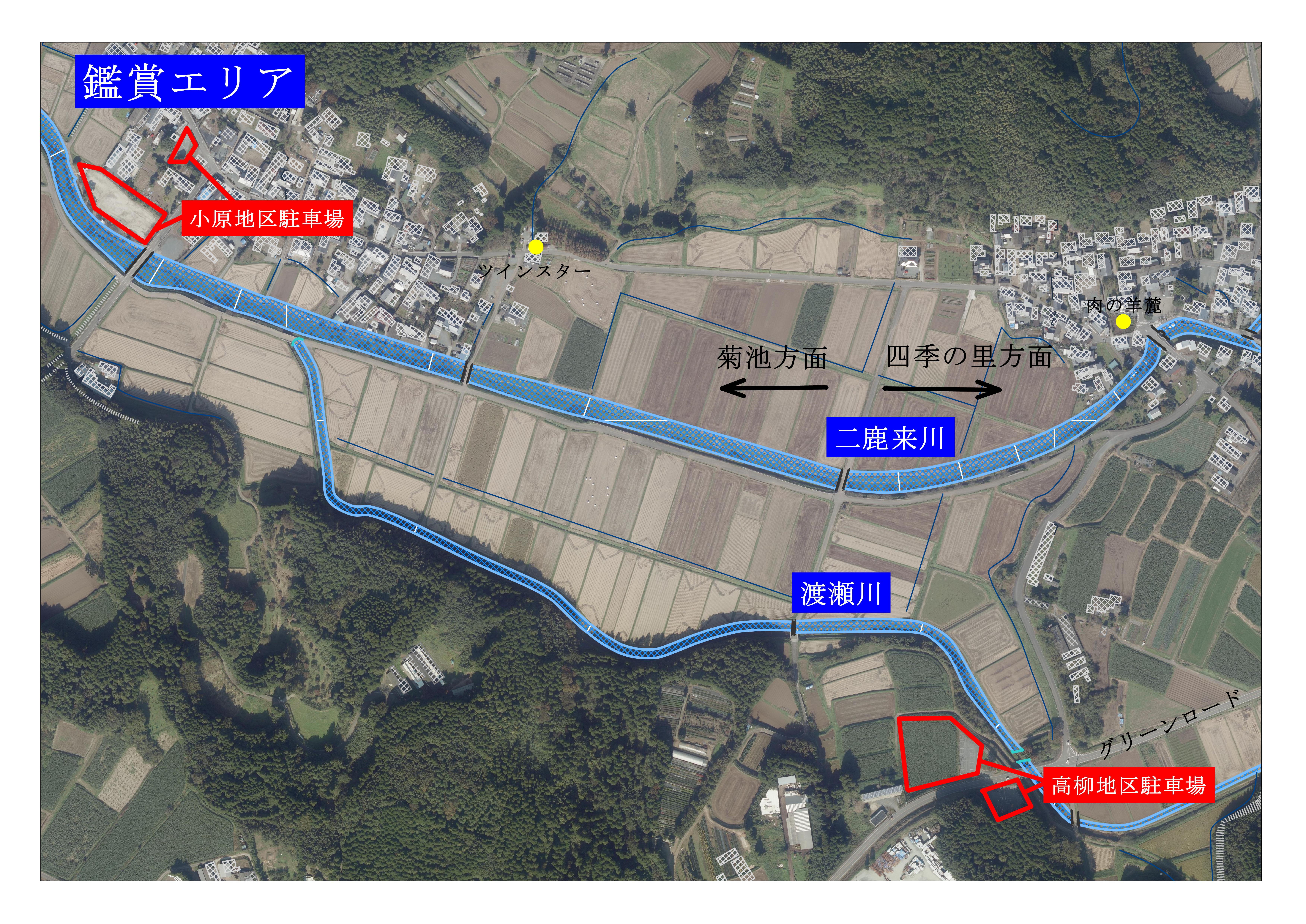 ホタルは渡瀬川と二鹿来川で見られるそうです。