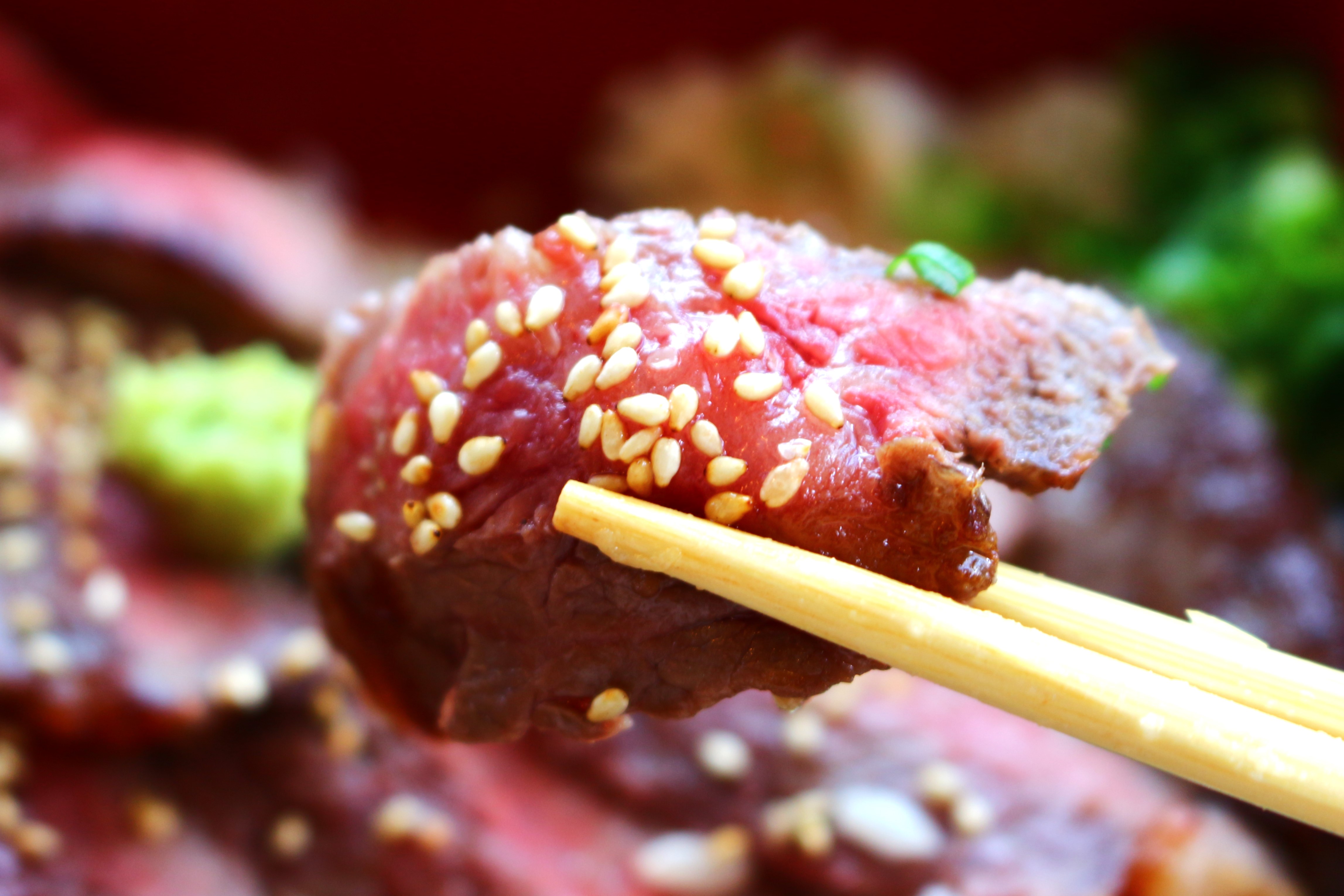 旭志牛はどちらかというと赤身寄りのお肉。程よいサシが入っていて、柔らかくて口の中でとろける!そして脂が甘い!