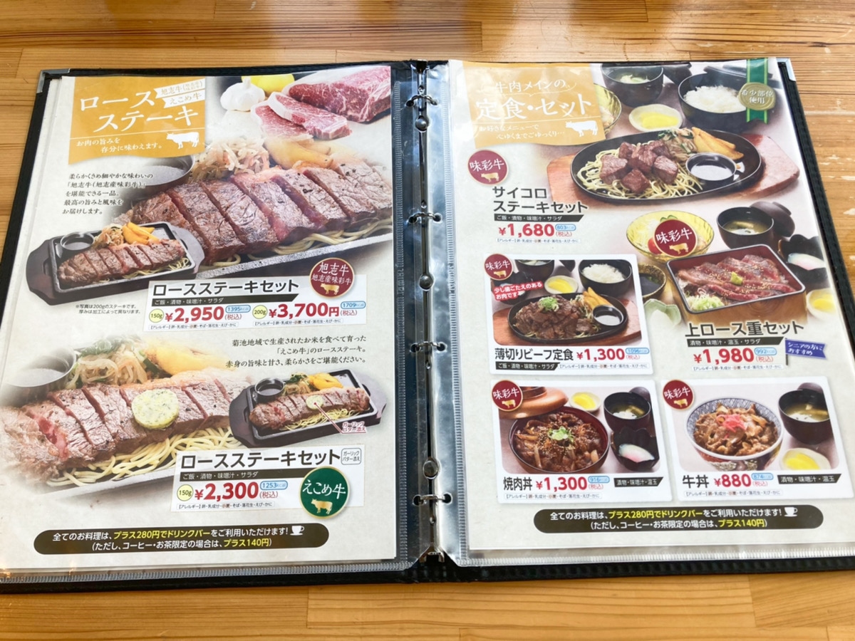 メニューは旭志牛(味彩牛)のオンパレード!