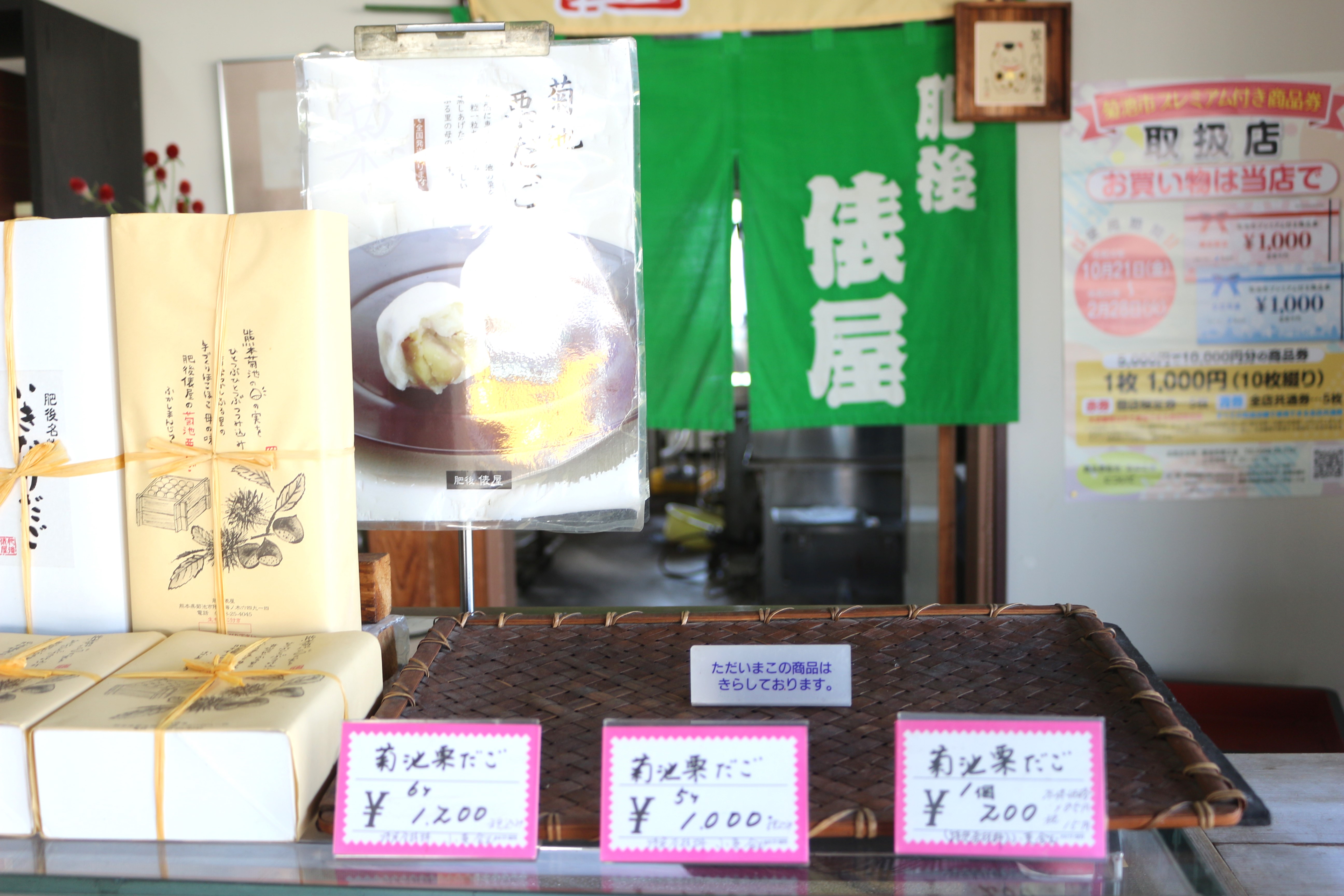 お店のこだわりは、米・芋・栗全て菊池市のものを使っている事。本物の材料を使う事でお客様に満足してもらえると強く信じてこだわっていらっしゃるそうです。