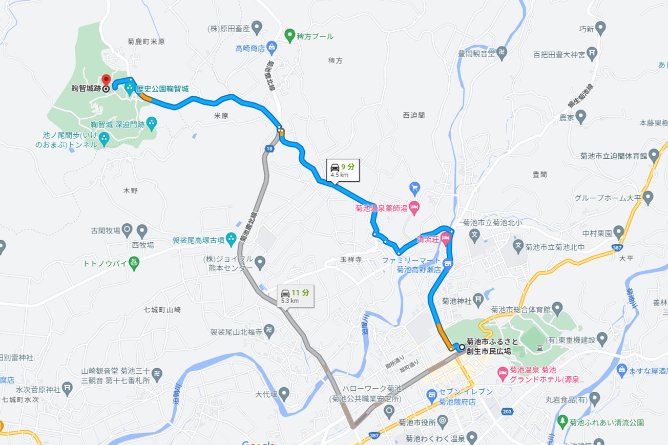 鞠智城は、菊池市の中心部から約10分の場所にあります。