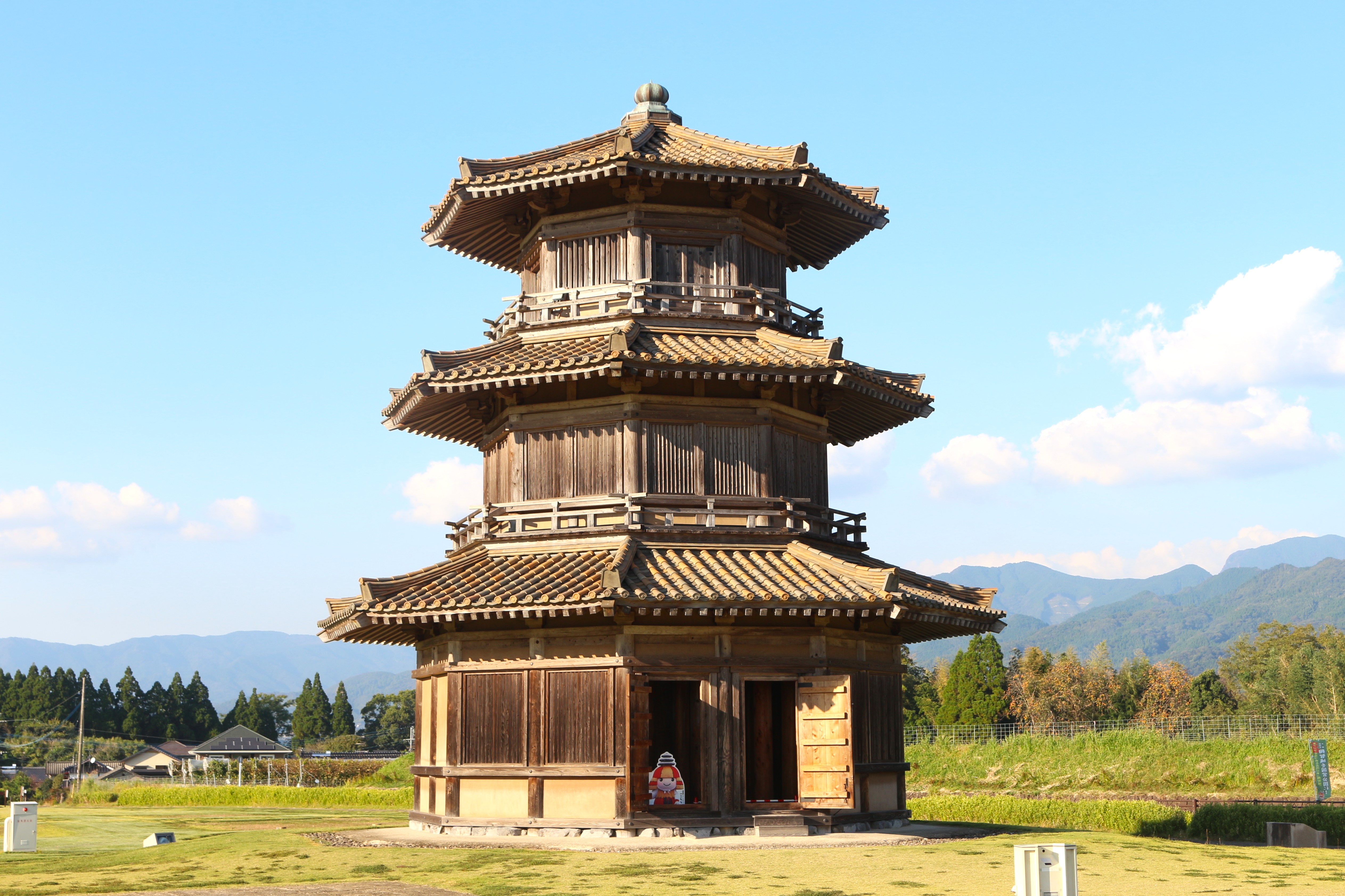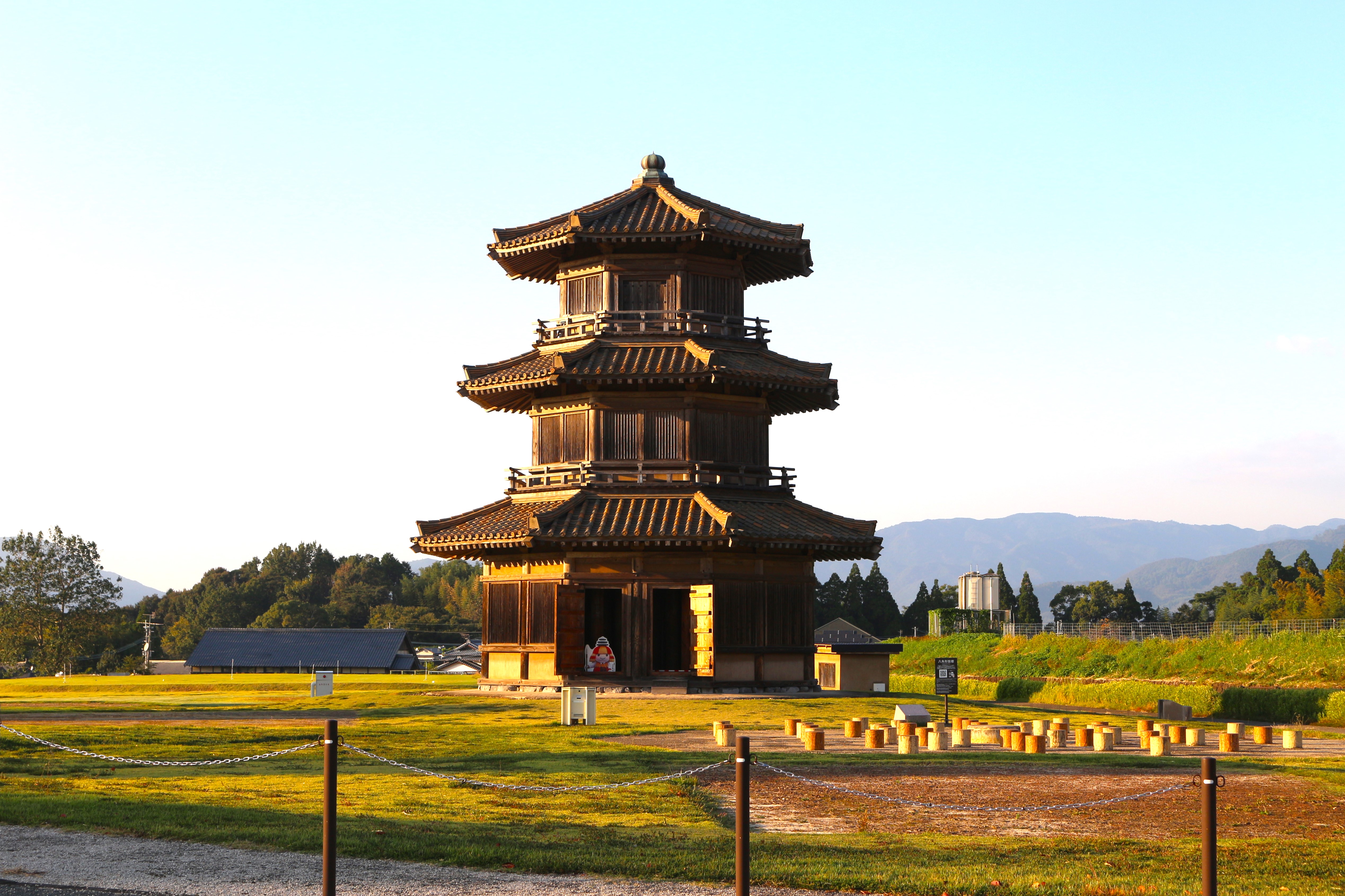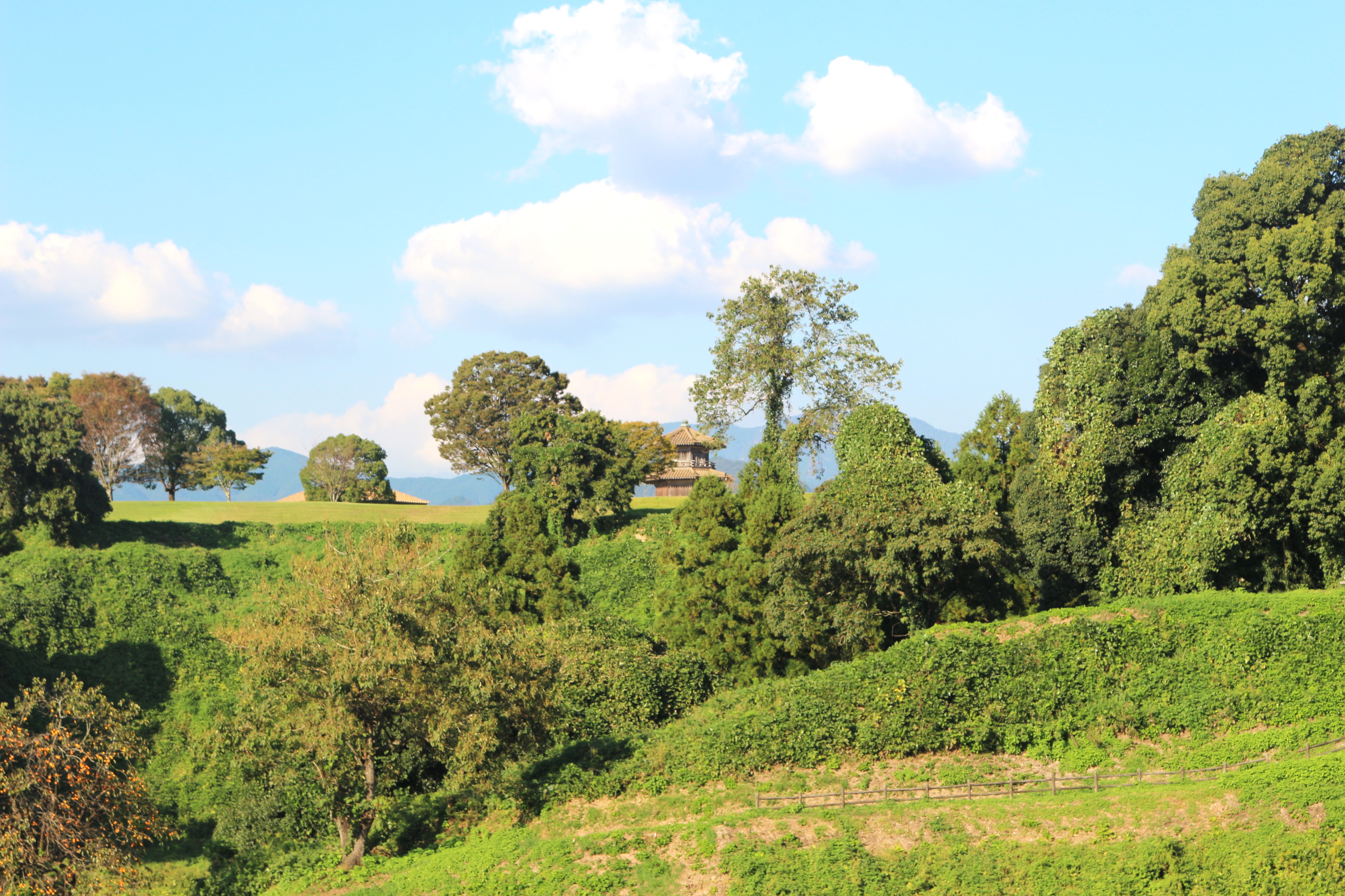 堀切門跡辺りからは山々の間に八角形鼓楼がひょっこり見えるので、隠れた写真スポットなんだそうですよ。ちなみに鞠智城フォトコンテストも開催中らしいです。