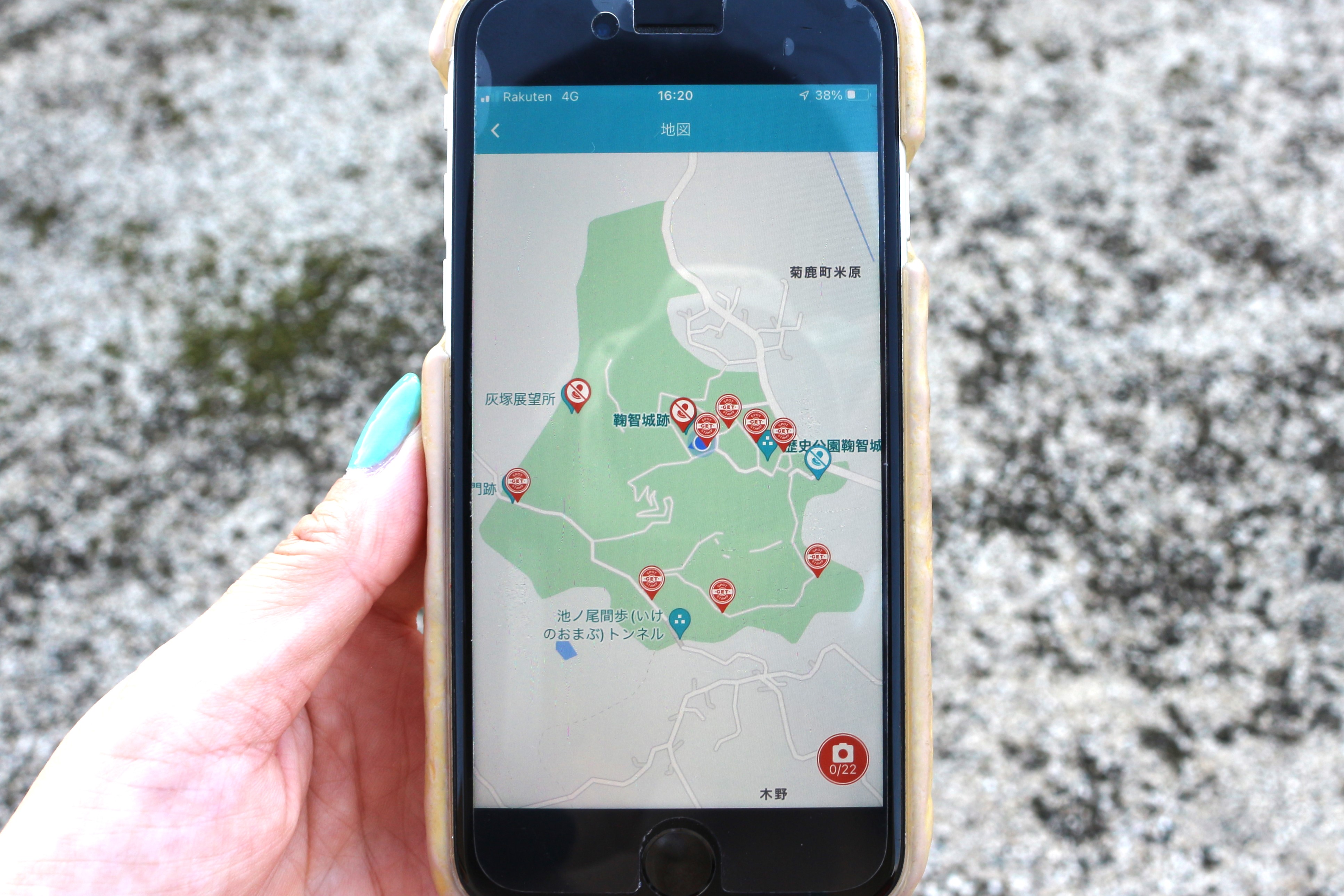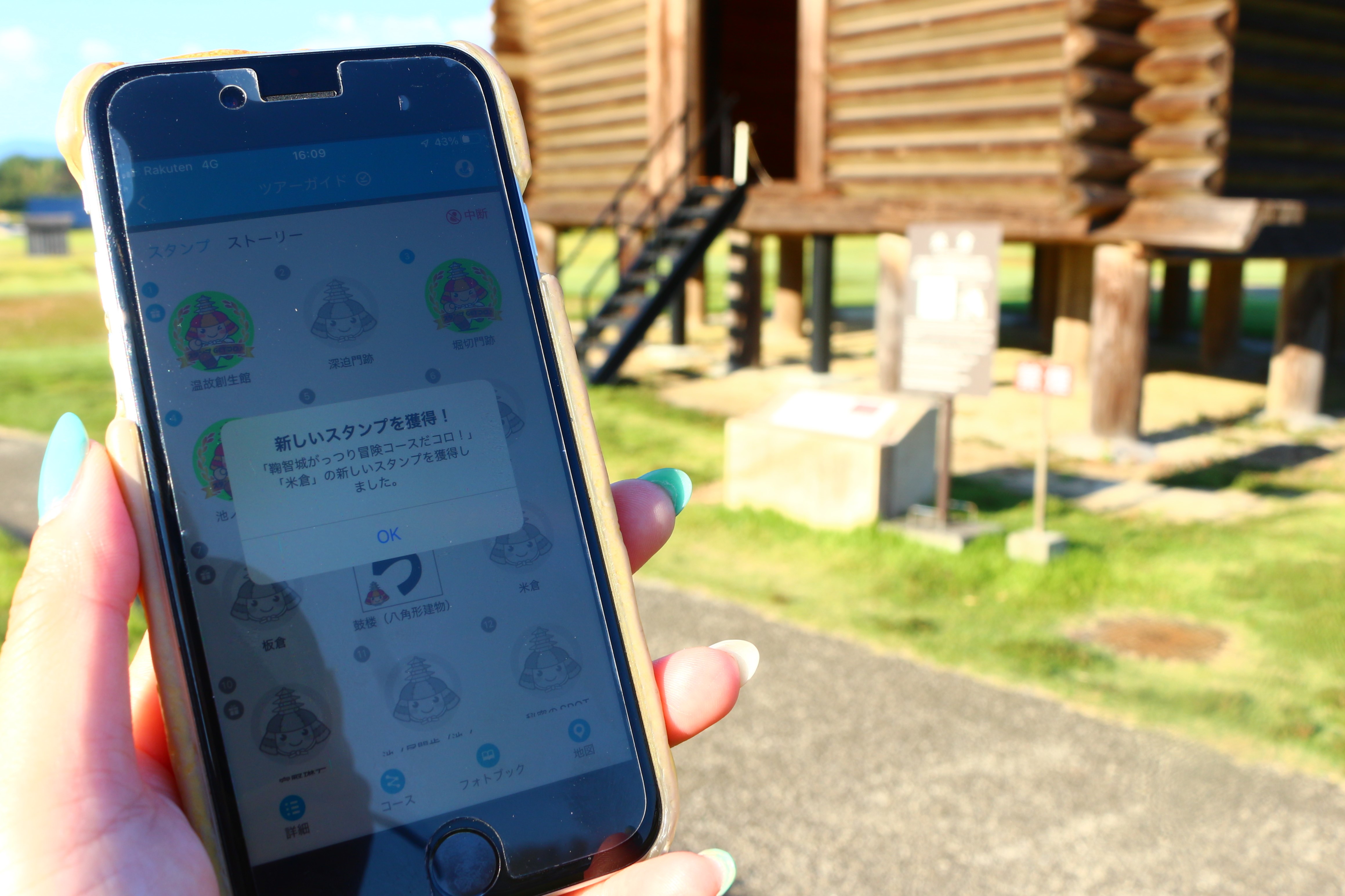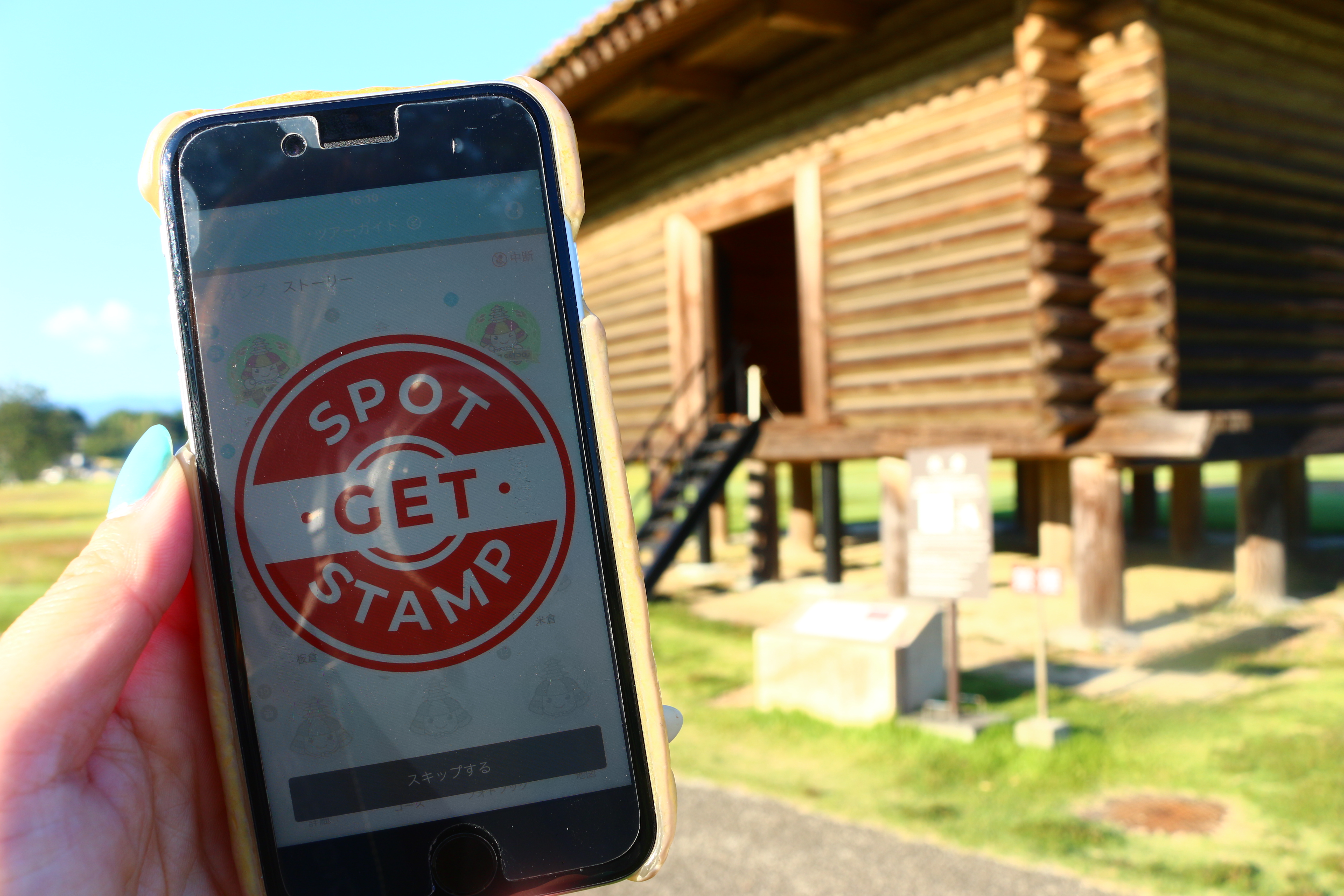 鞠智城デジタルスタンプラリーはアプリをダウンロードし、鞠智城内に設定されたスポットへ行くとスランプがもらえる仕組み。
