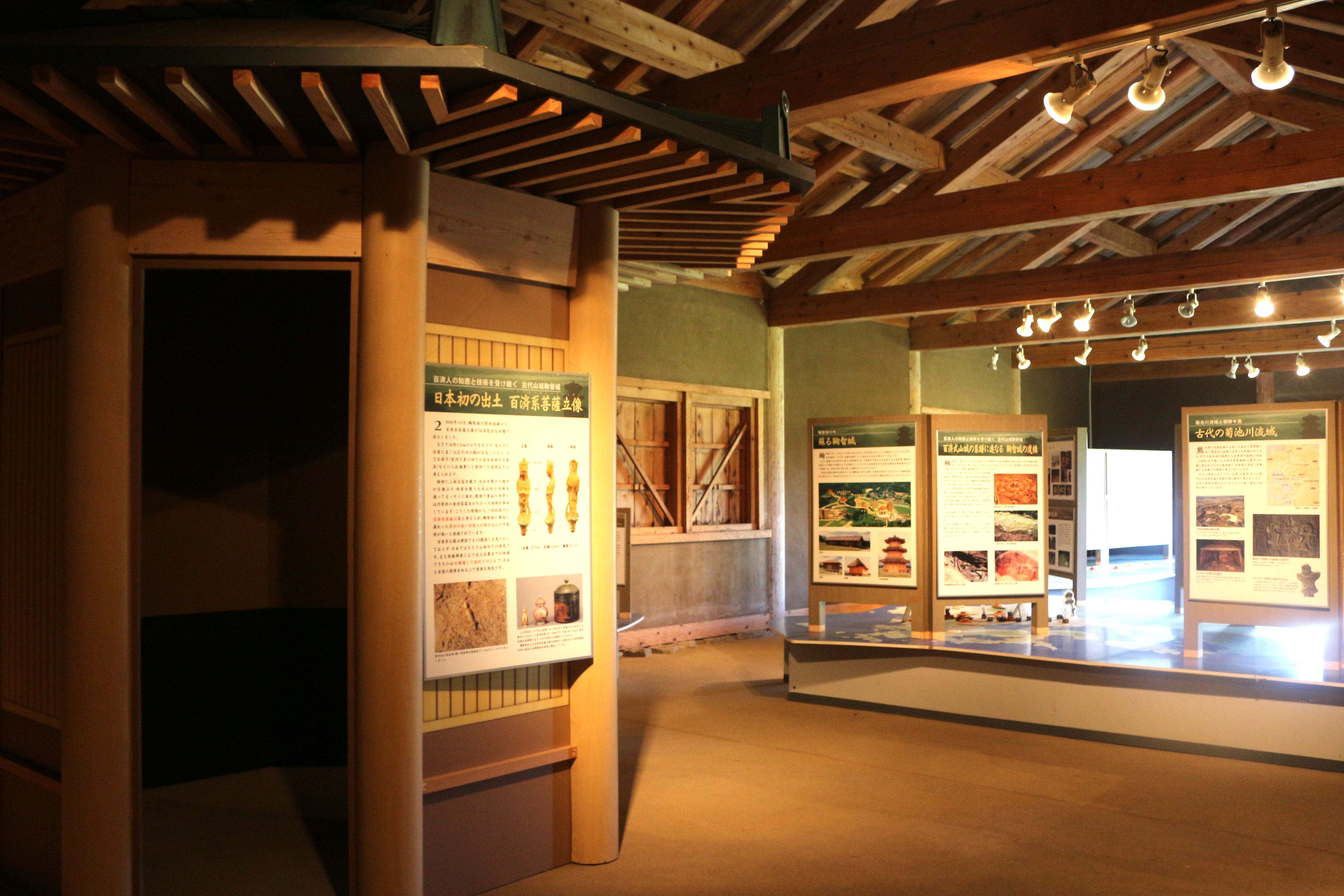 この兵舎だけ土日に中へ入ることが出来ます。中には、鞠智城を始めとした古代山城に関する展示があり、日本地図と一緒に展示してあってとても分かりやすい。歴史を知ると、さらに面白くなってきます。