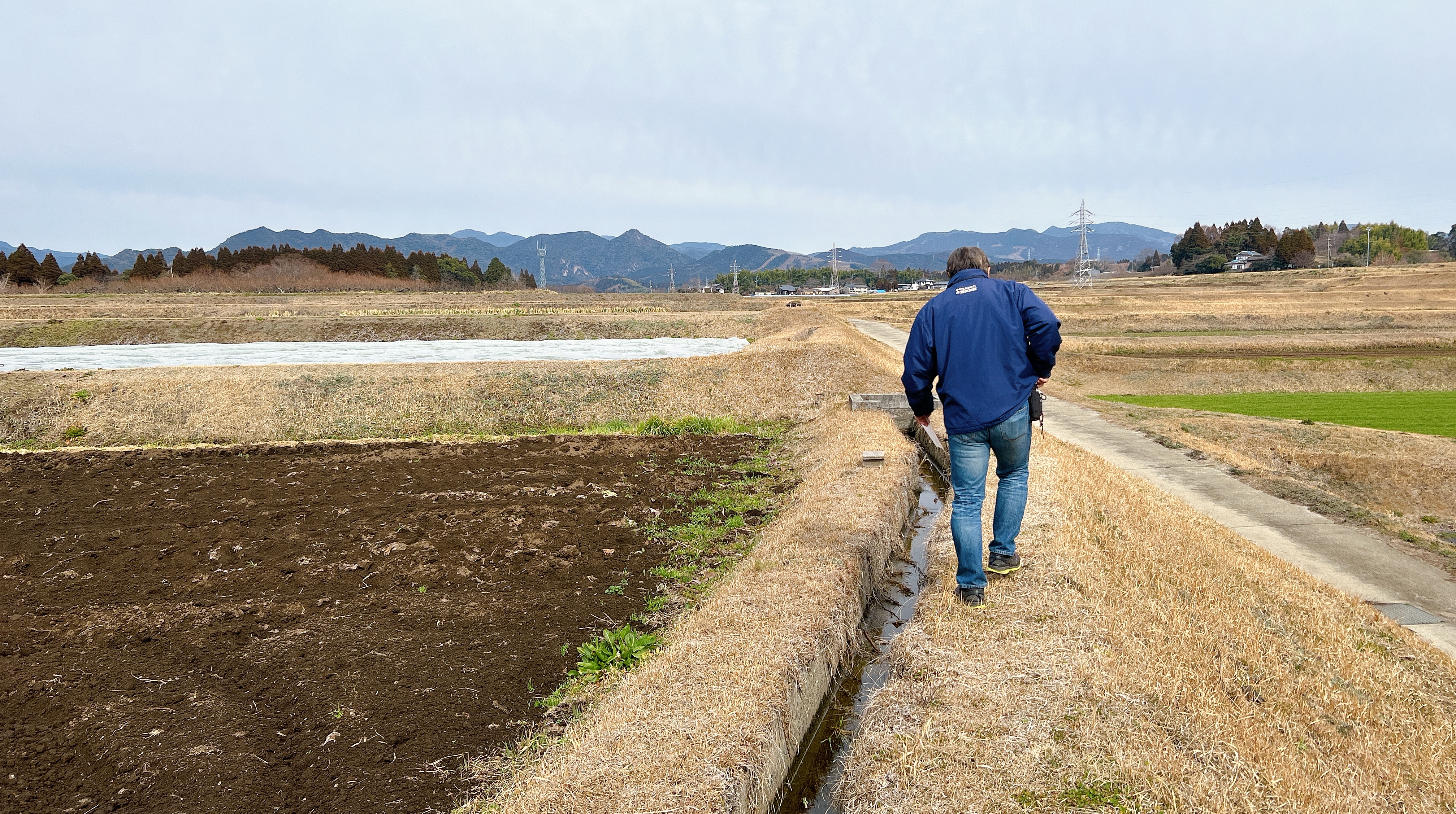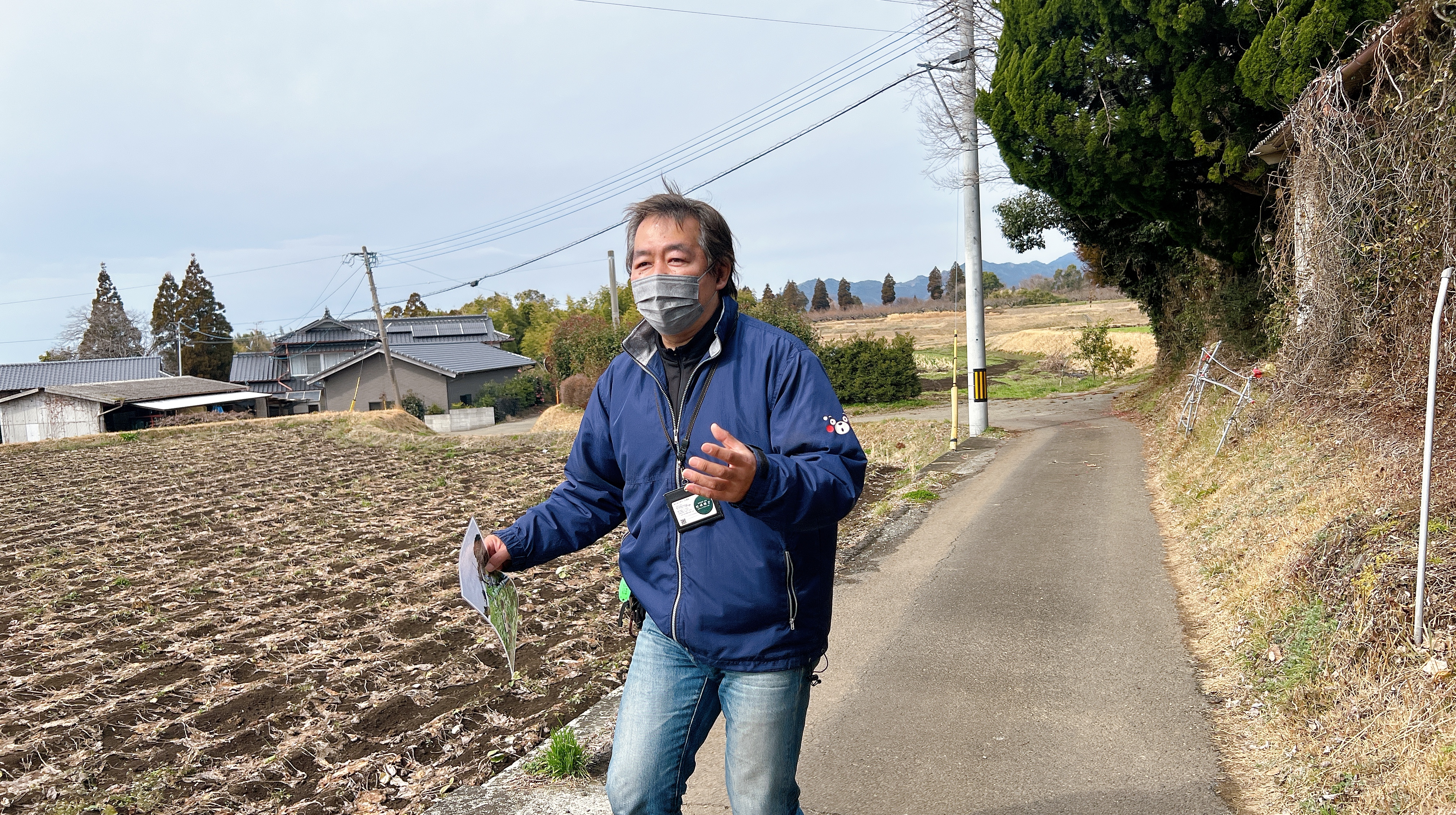 せっかくだけん、あぜ道ばいきましょうかね!と松崎さん。