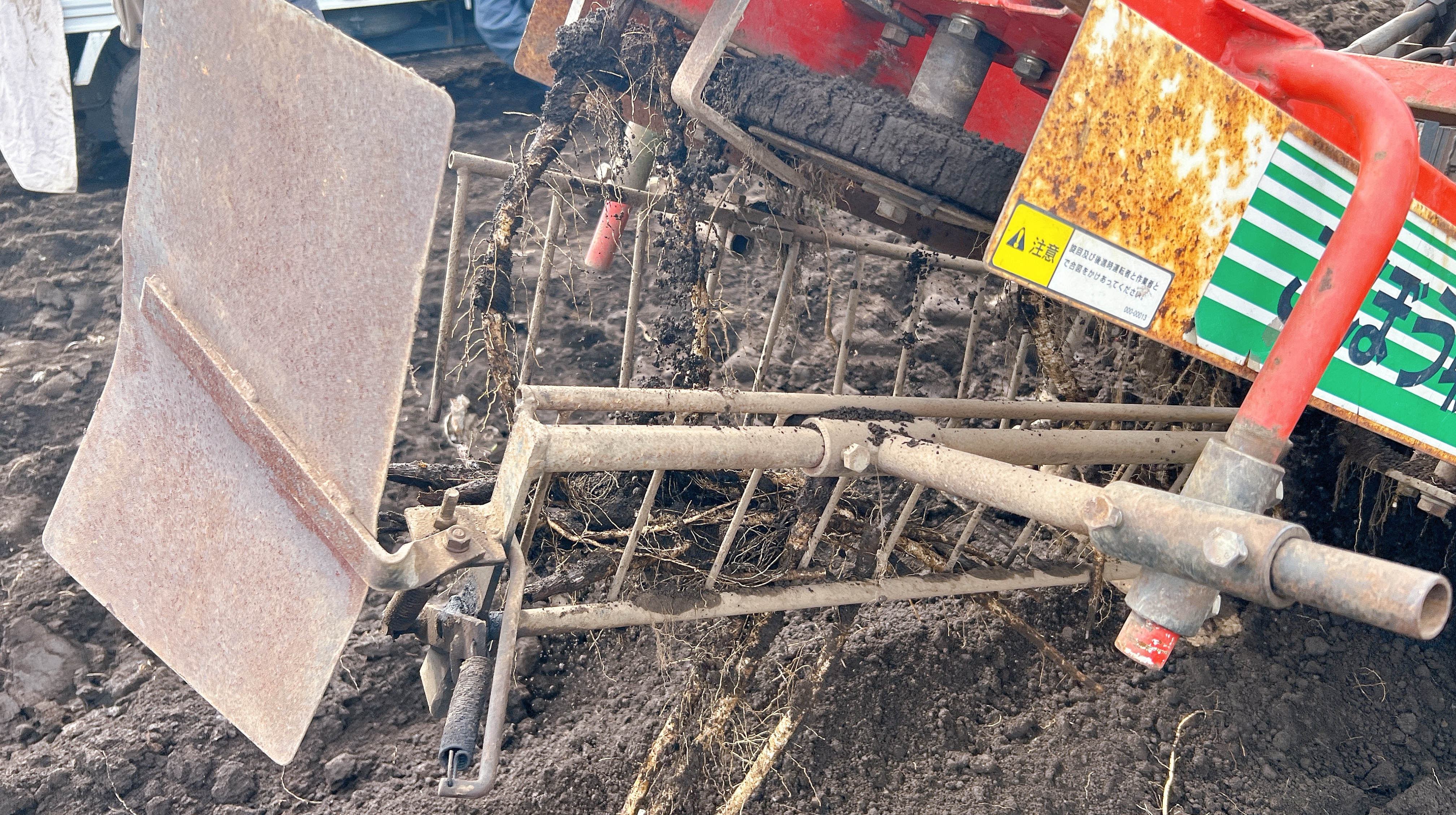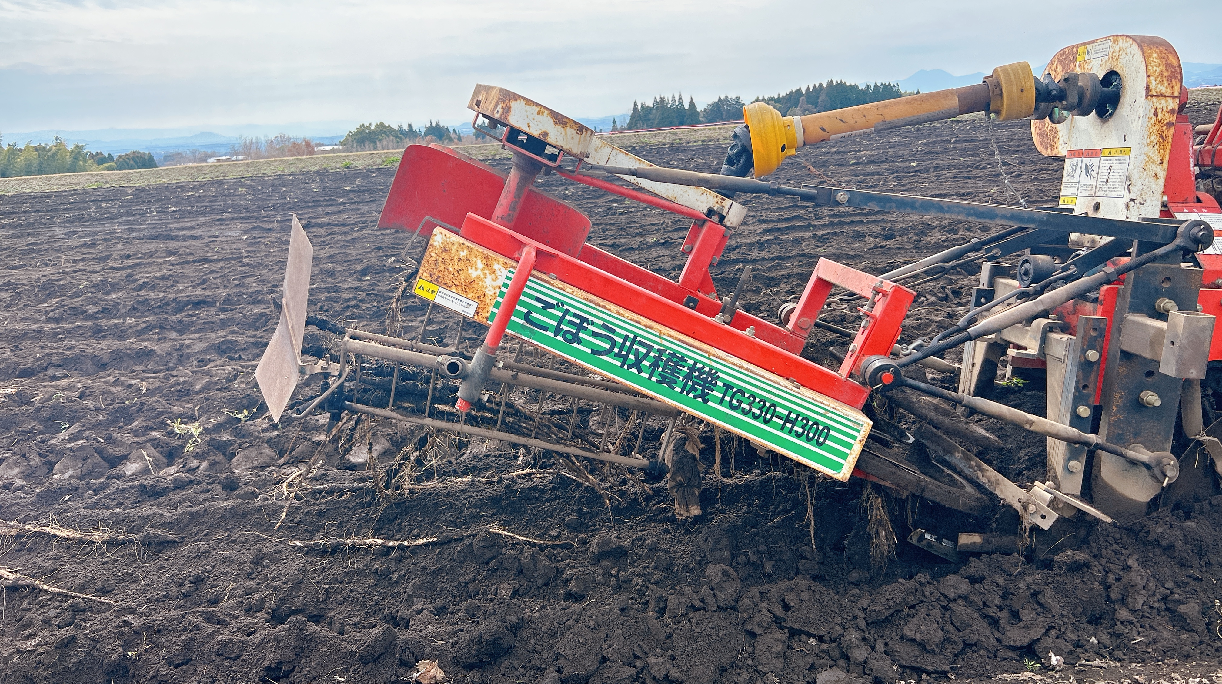 「ごぼう収穫機」というネーミングそのままな機械で収穫されています。
