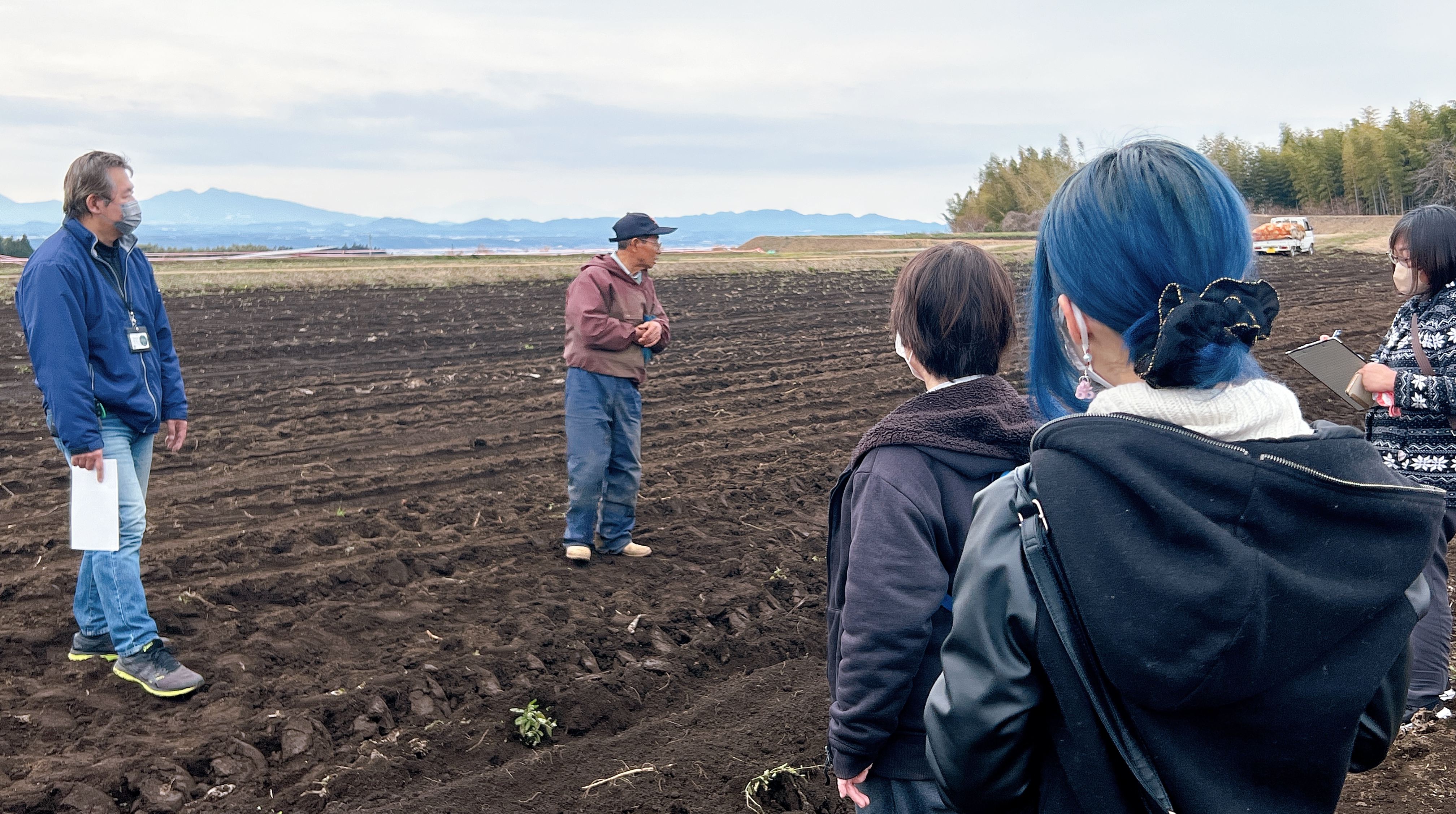 冬ゴボウの収穫見学を終え、再びバスに揺られて少し山を登り次の目的地へ。