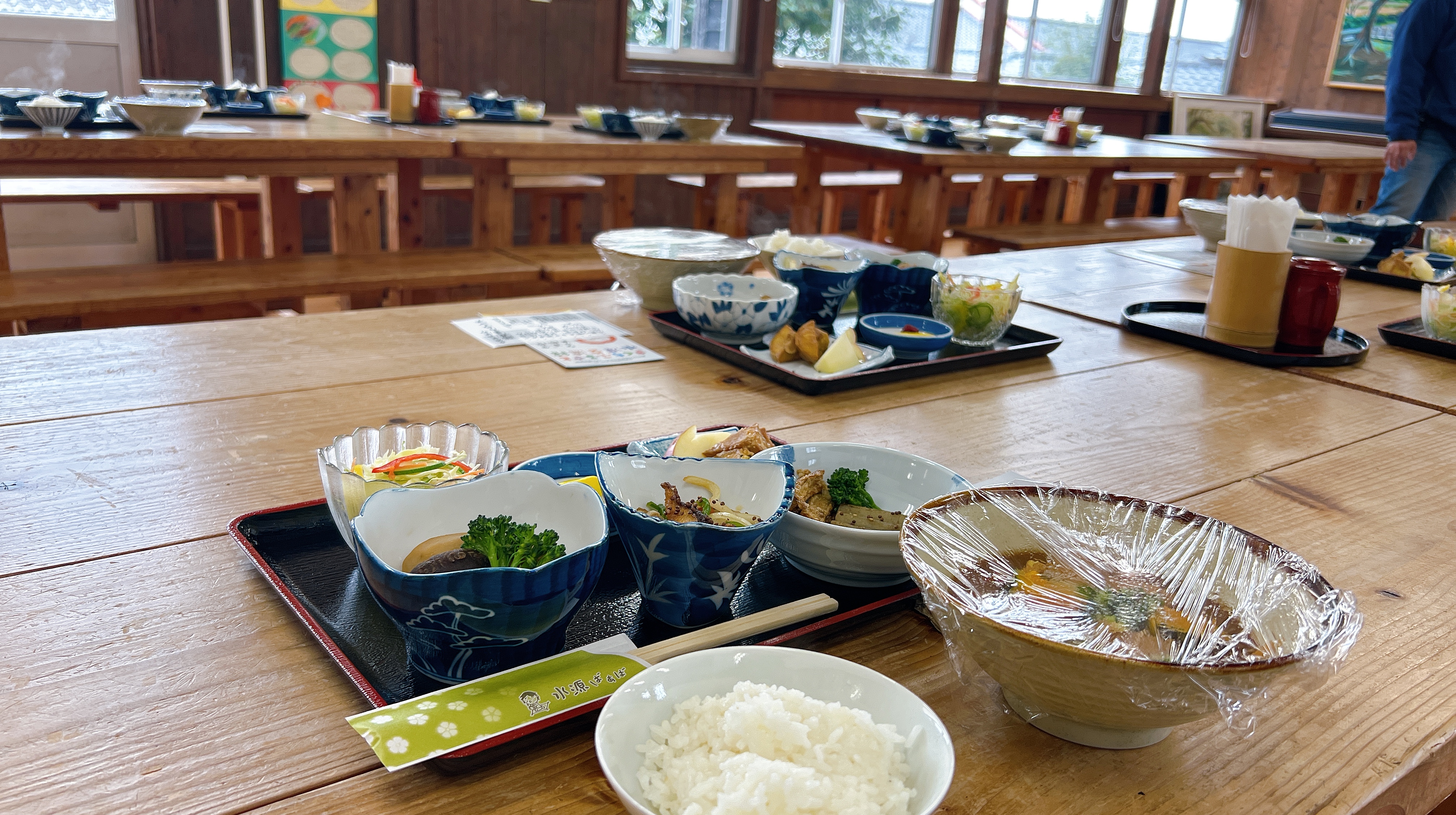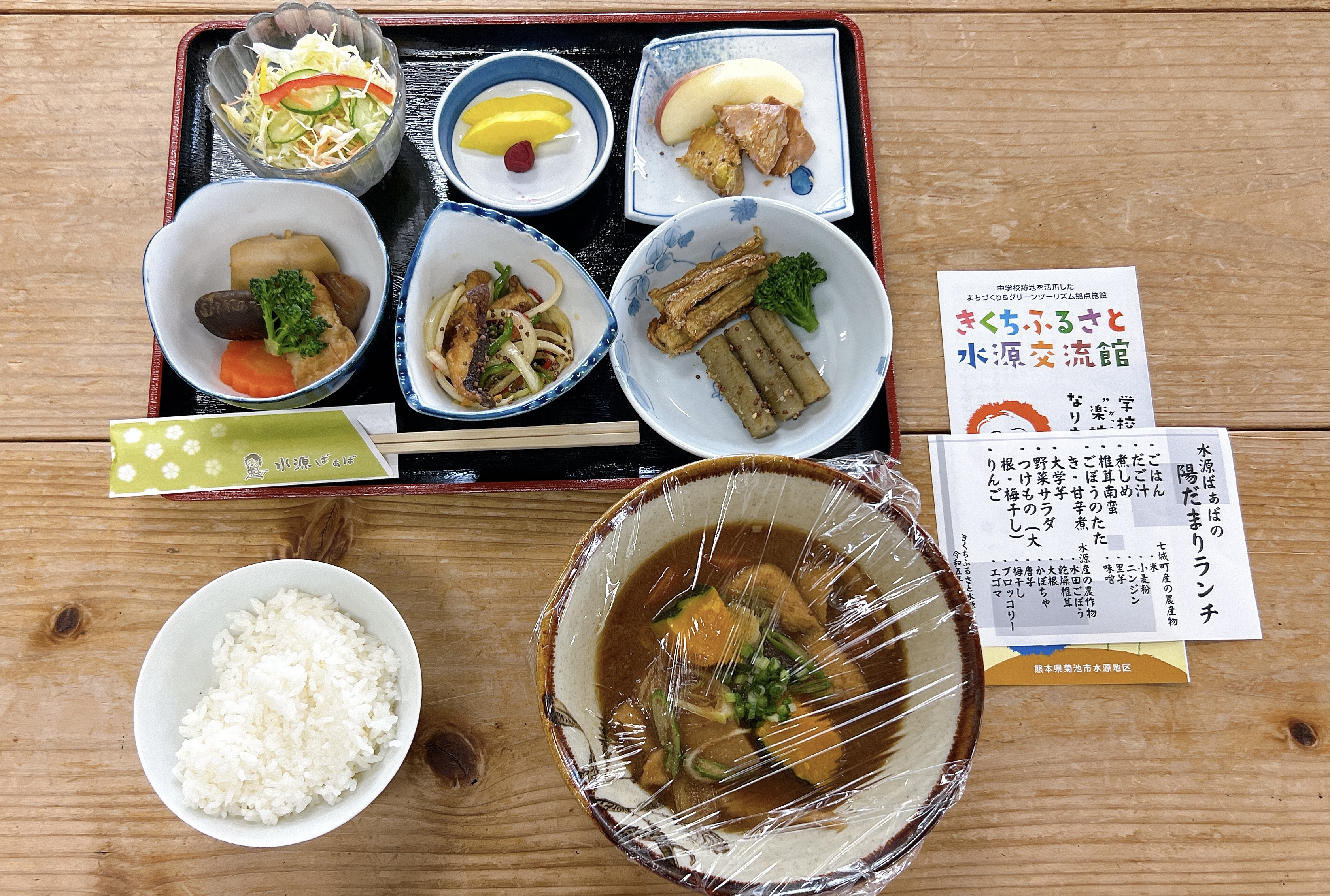 こちらのランチは「水源ばぁば」という水源地区のお母さんたちによるお食事。地域の田畑で収穫された食材がたくさん使われています。