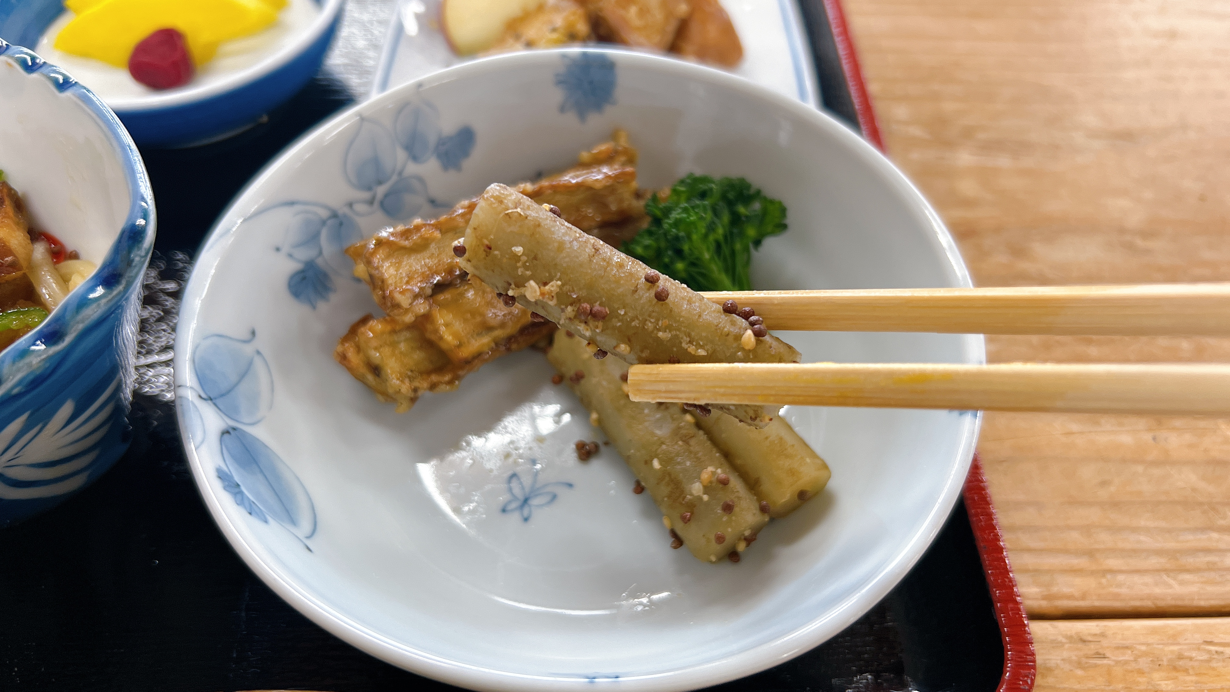 一般的なゴボウに比べ、色白で柔らかく、アクも少ないのだそうです。なんと羨ましい。