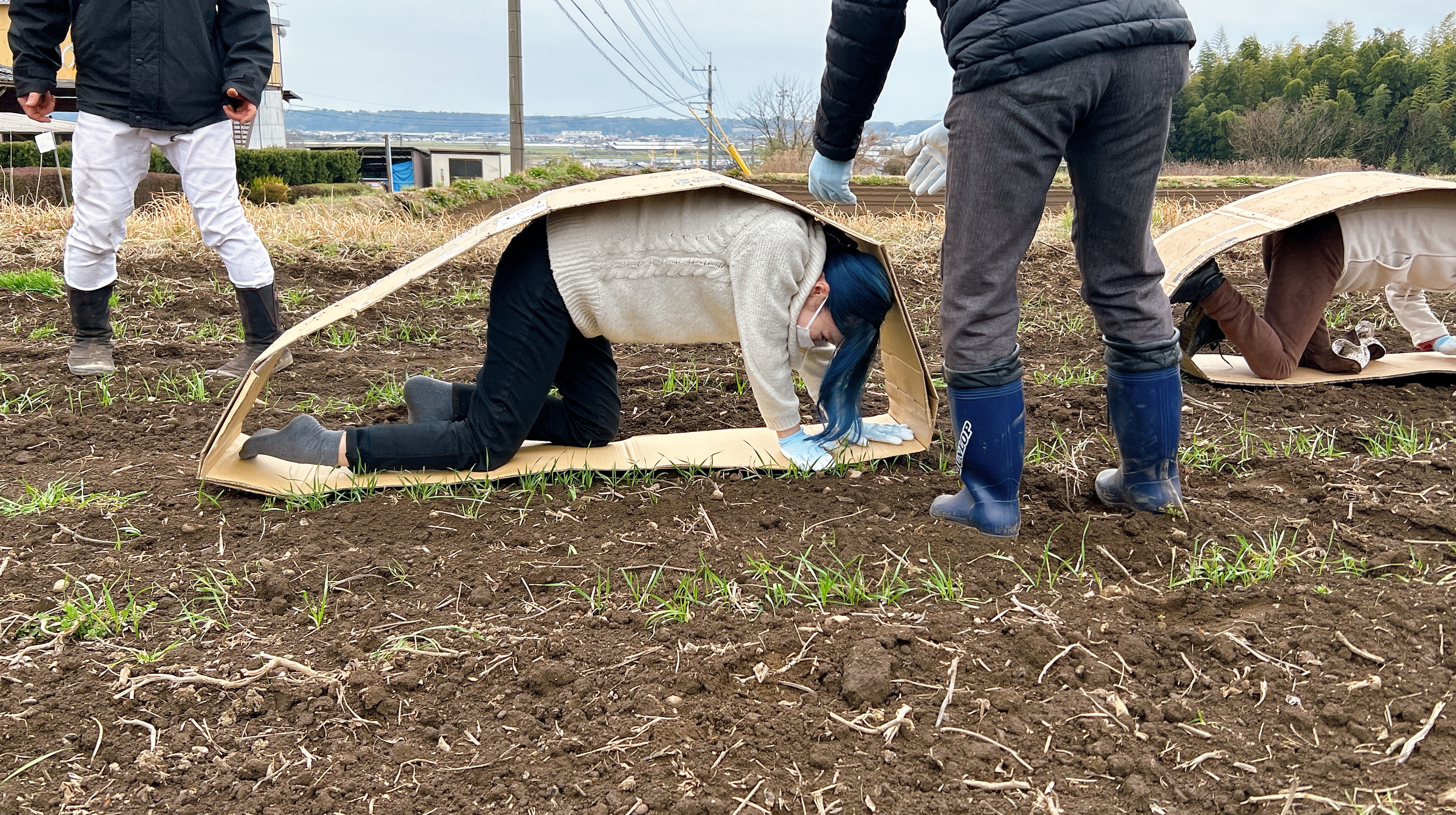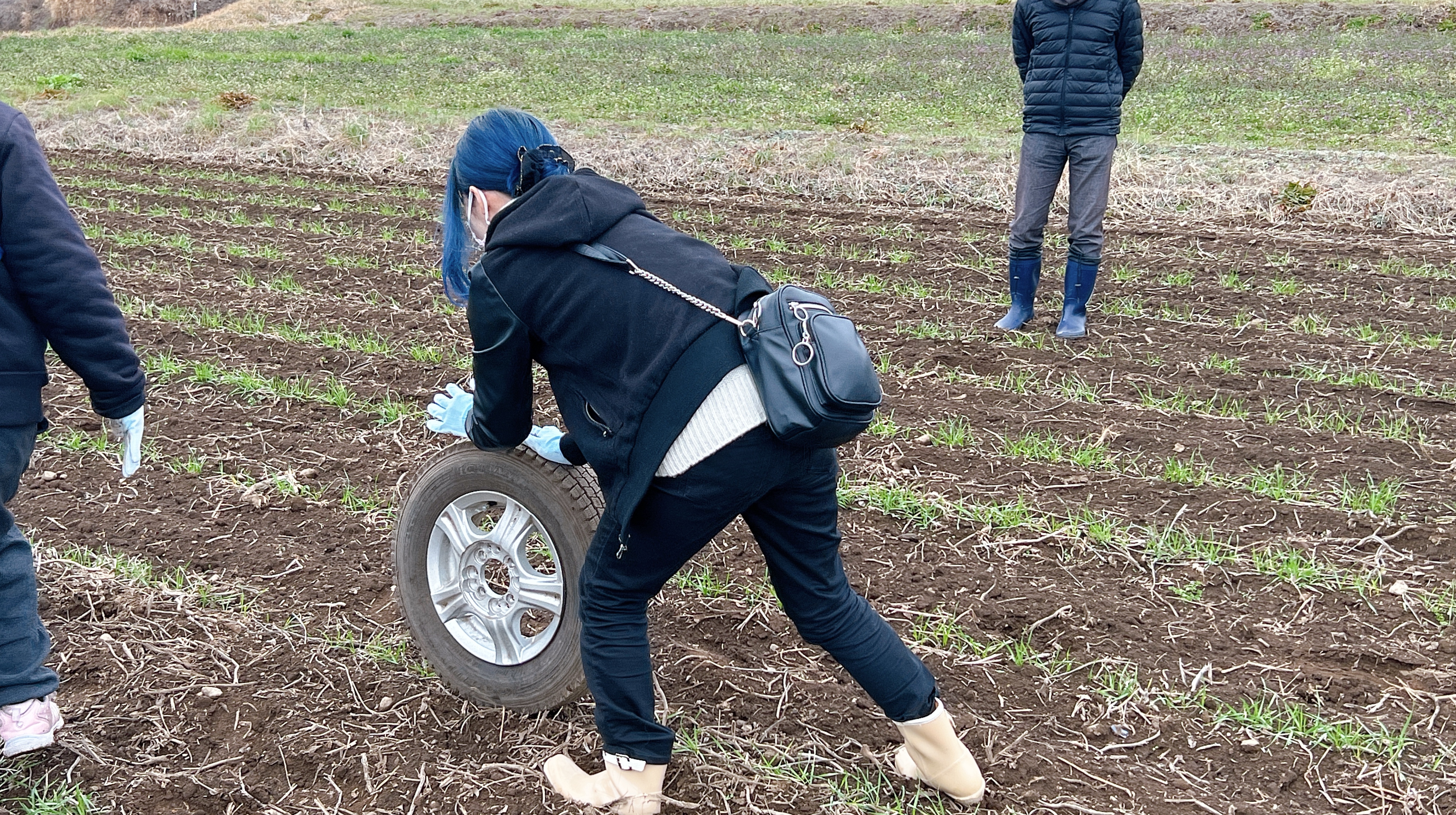海彦さん曰く、肩甲骨など普段動かさない場所を使うのですごく良い運動になるのだそう。しかも麦踏みの作業も行えて一石二鳥!とのこと