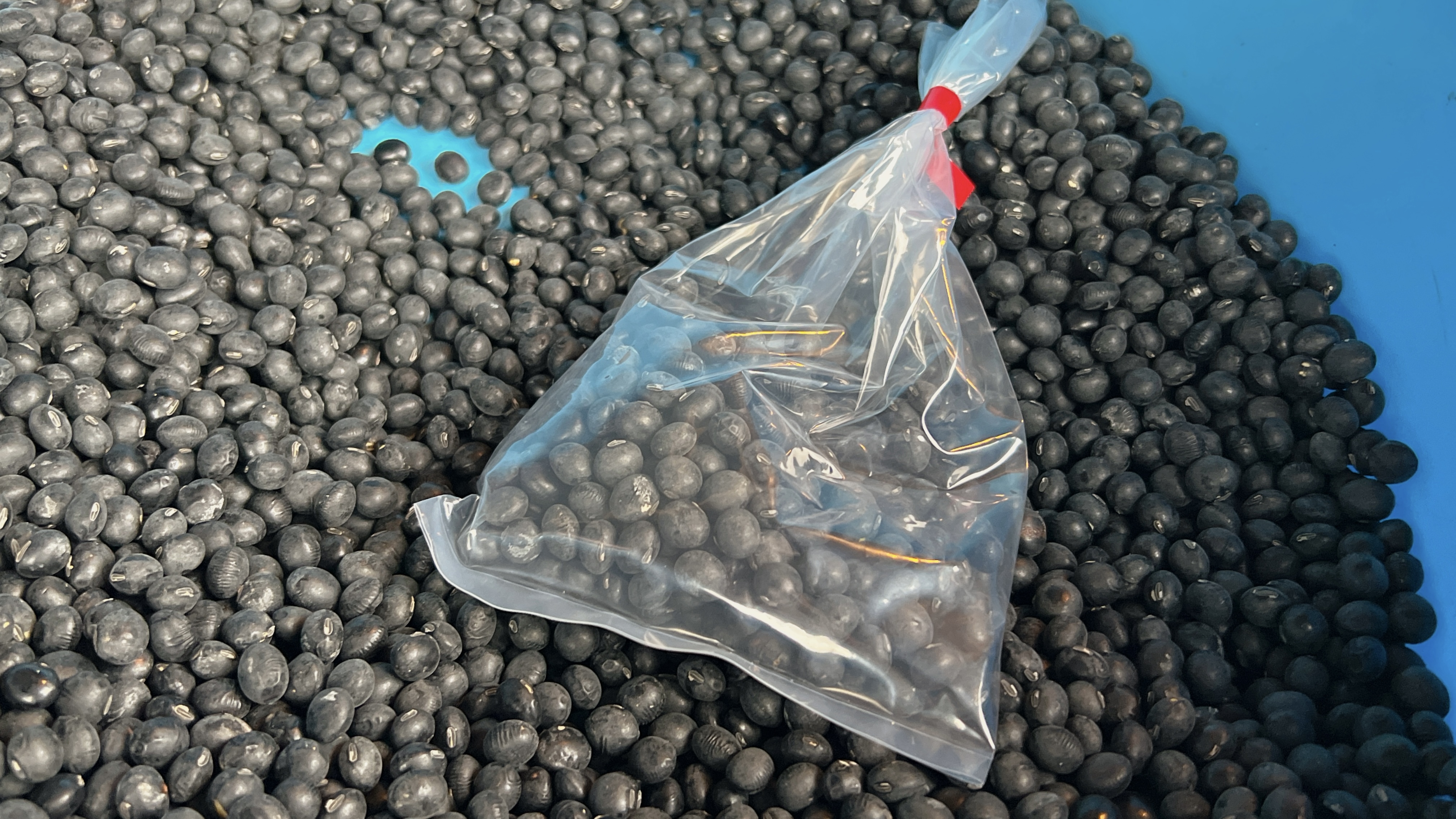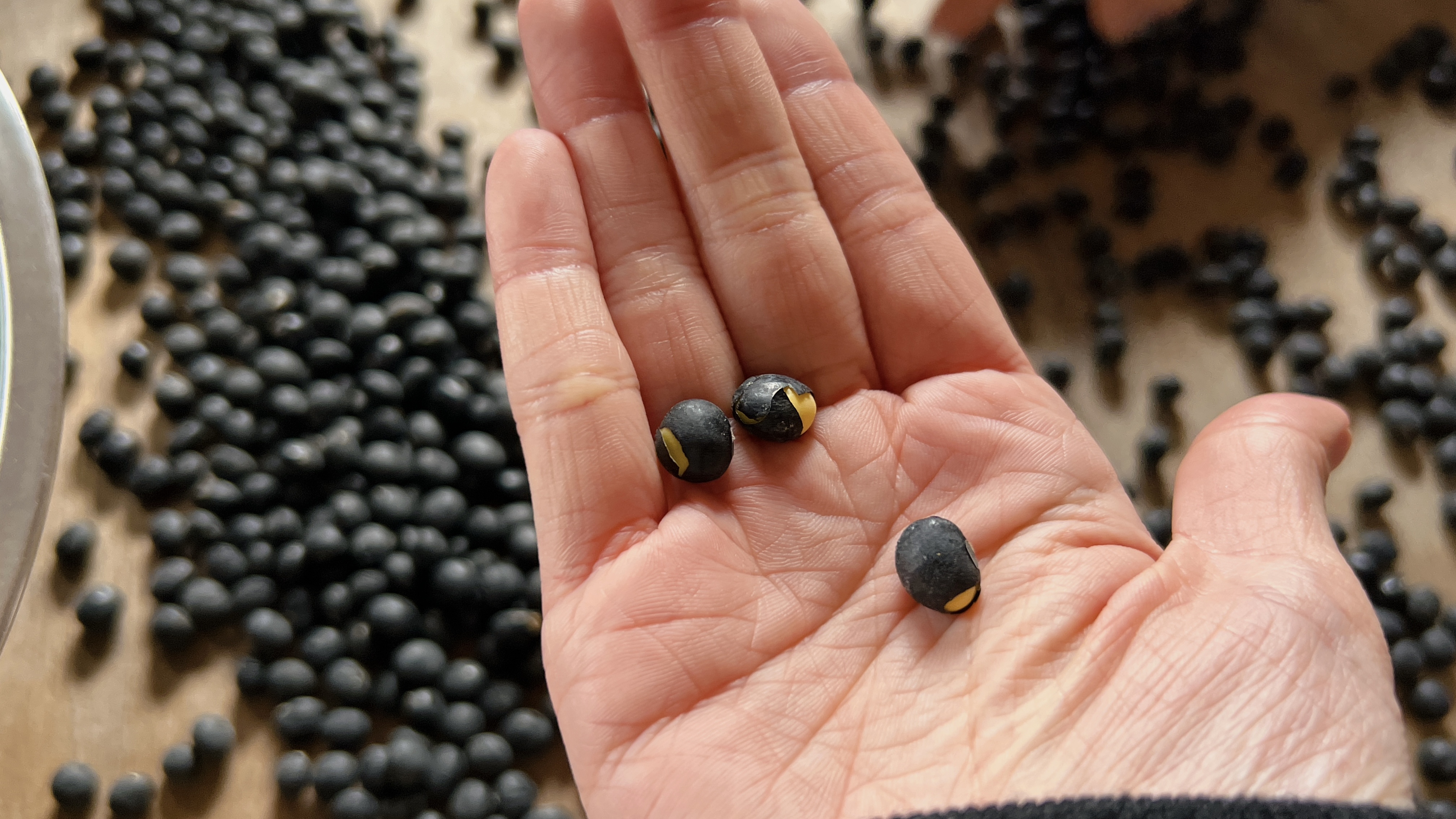 こちらの黒大豆を選別する作業を体験させて頂きます。