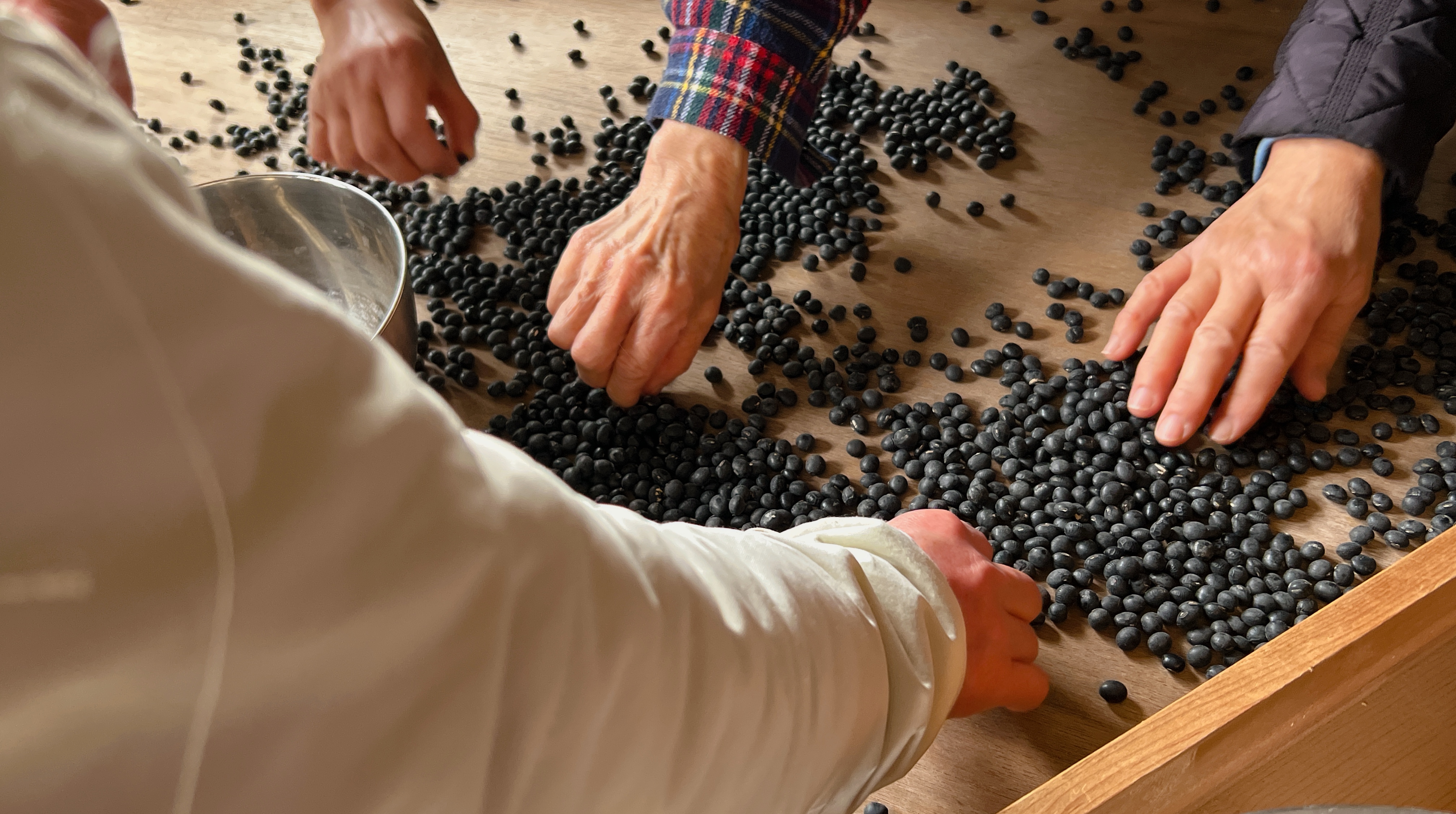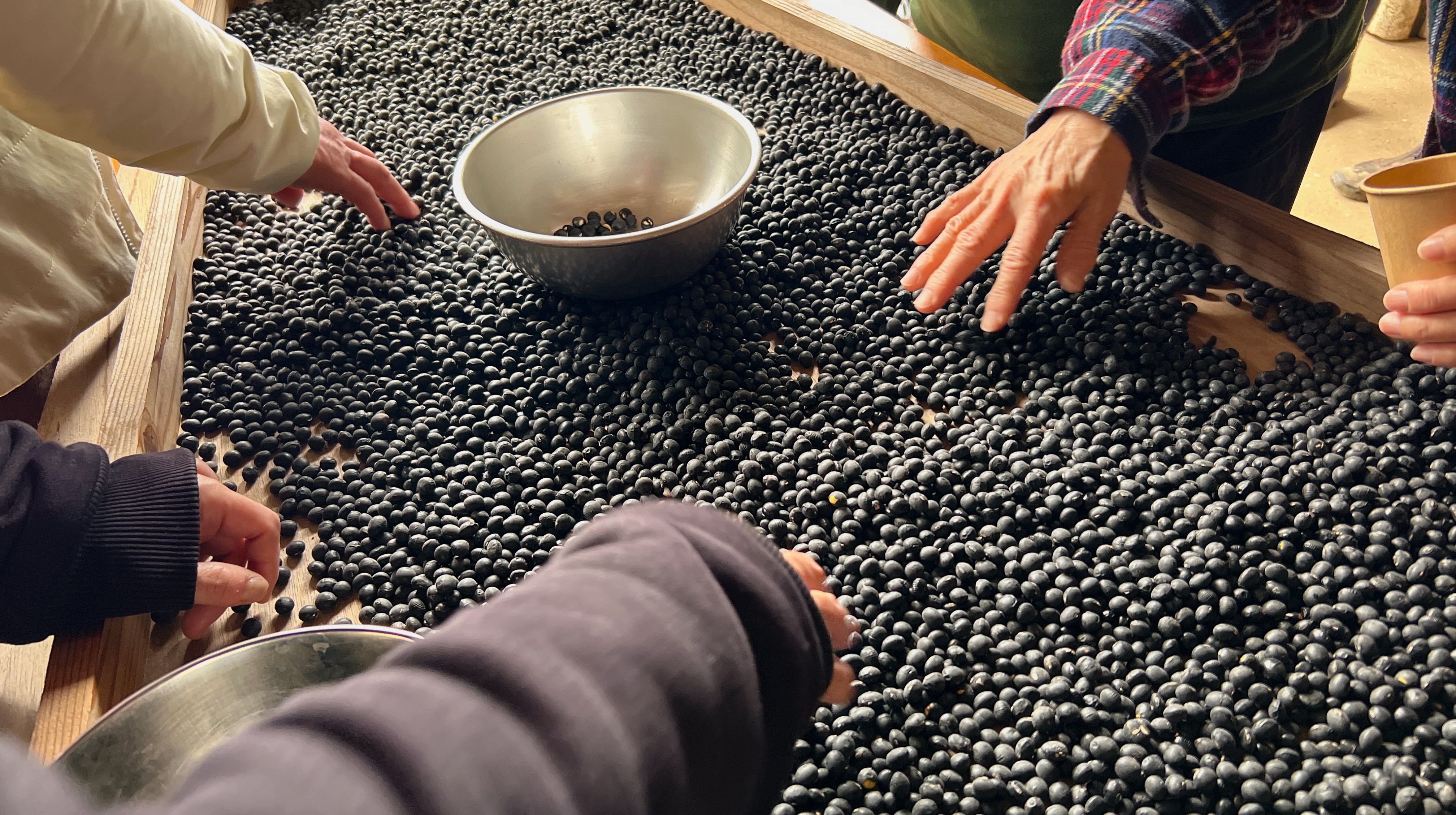 言黒大豆の選別体験と自然派スイーツ