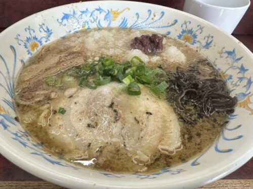 豚骨ベースのスープに梅肉や紫蘇をプラスした、味は濃いけど後味スッキリなラーメン。