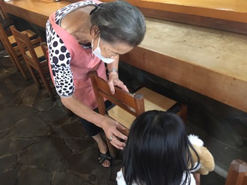 子どもを連れていったところ、奥様が、うさぎのぬいぐるみや、クマの置物をプレゼントしてくれて、まるで本当のおばあちゃんみたい!あまりのホスピタリティに感謝感激で、心もあったかくなりました。