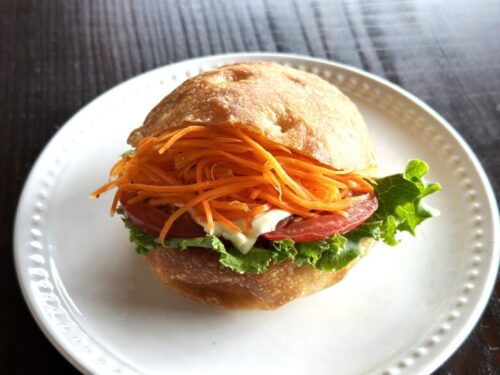 キャロットラぺとトマトとレタスのシンプルでボリュームのあるサンド。