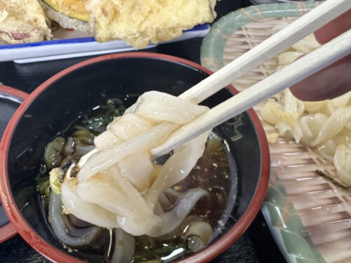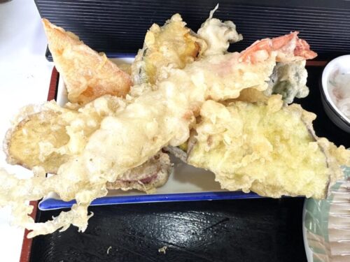天ぷらは注文してから揚げるのでアツアツのサクサク。種類も多い。
