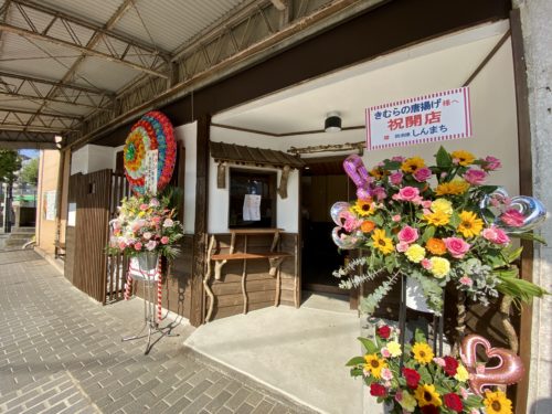 お店の前に来ると、初日とだけあってたくさんのお祝いのお花に囲まれています。