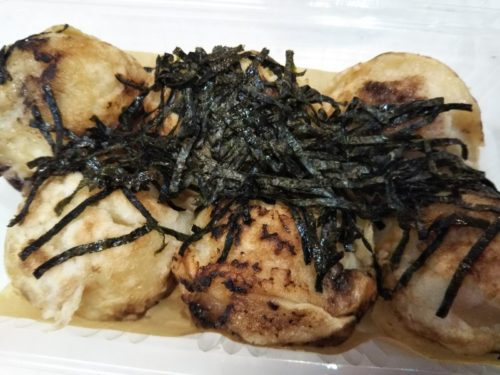 たこ焼きの上には、まんべんなく塩が振りかけられ、刻みのりがたっぷり!