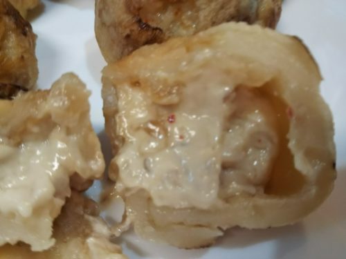 パッと見は普通のたこ焼きで、キムチの味がしみているのでソースなどは無し。見た目はとってもシンプルです!